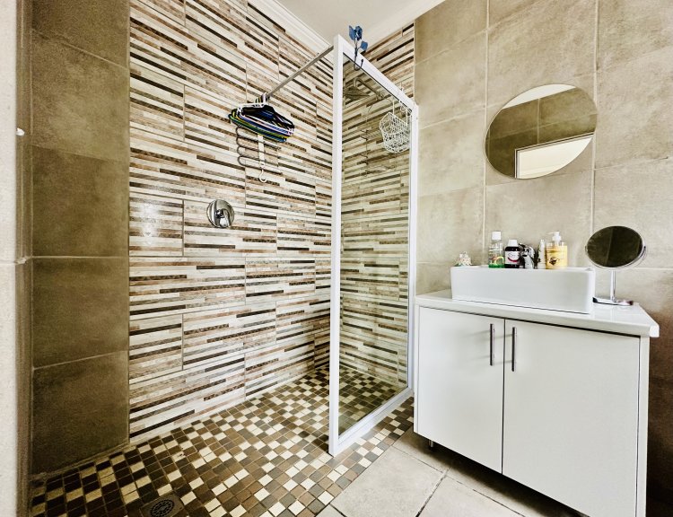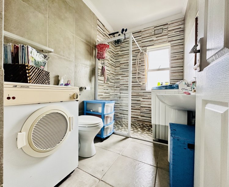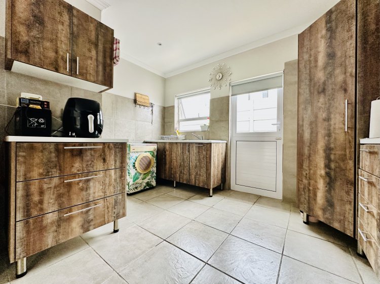 Security is a top priority with an alarm system, invisible burglar bars, security gates, and the property is fully walled. The double garage with electric motor includes a handy drive-through feature, giving you additional secure parking in the back yard. Aluminium windows, lots of paving around the house, and a neat garden make upkeep effortless.