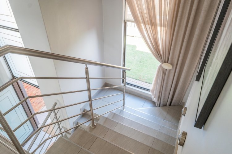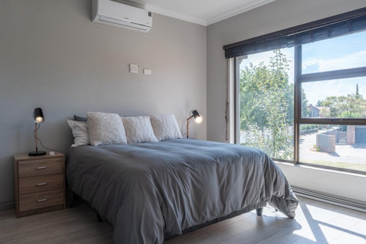 Upstairs and downstairs comfort is ensured with three generously sized bedrooms, all fitted with built-in cupboards and air-conditioning. The main bedroom is a private sanctuary, complete with a beautiful ensuite bathroom.