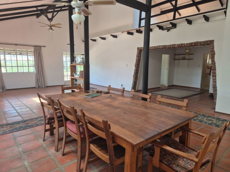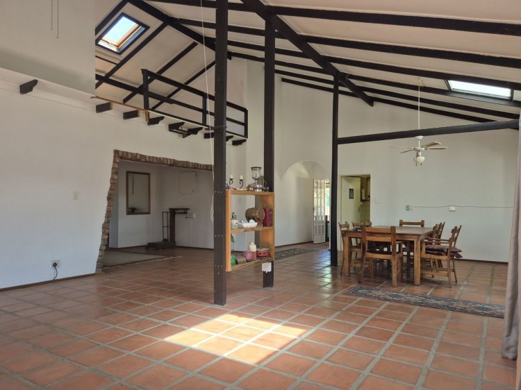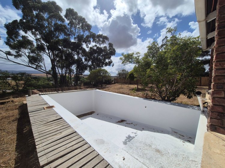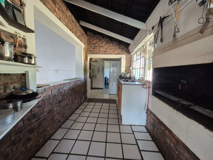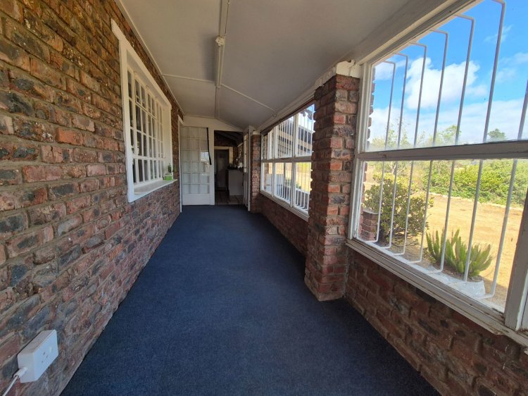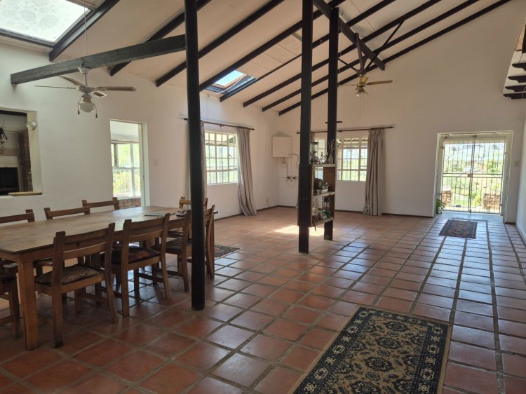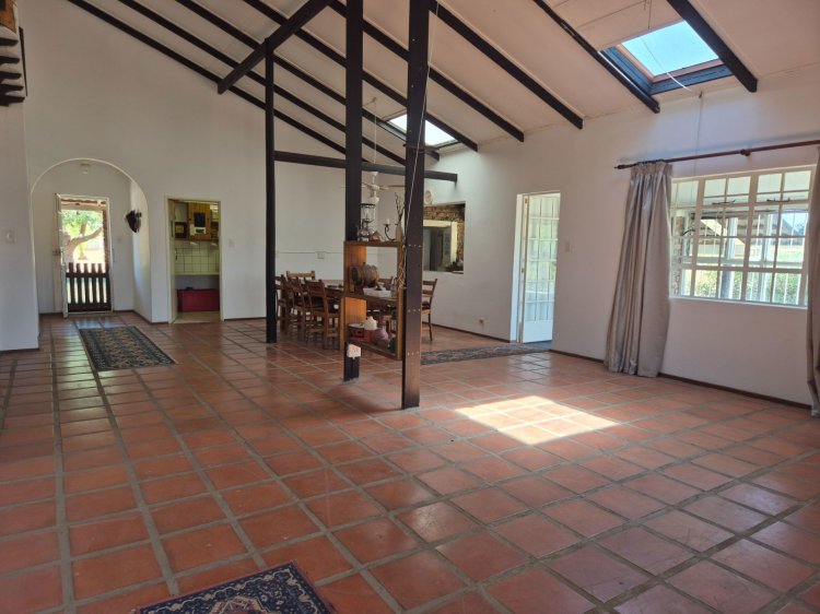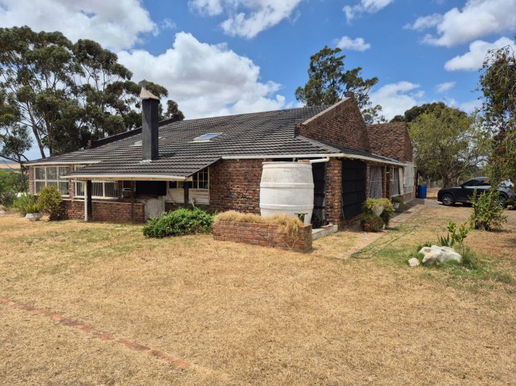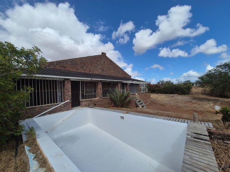 Tucked away at the end of a private panhandle, this extraordinary 1.34-hectare property is the kind of place that stops you in your tracks. The moment the gates open, it feels as if you have arrived on a peaceful farmstead - quiet, open, and beautifully removed from the world- yet still close to every town amenity. For developers, investors, young families, or anyone longing to live sustainably and semi off-grid, this is a rare canvas with exceptional potential! A warm, character-filled facebrick home welcomes you, with an enclosed wrap-around veranda offering sunlit corners and a neatly tucked-away storeroom. Inside, a spacious open-plan living and dining room unfolds - high ceilings with exposed beams, skylights you can open, and an airy atmosphere that instantly feels like home. Add a staircase and you have the perfect loft space for a study nook or children's play area. The kitchen flows seamlessly from the living spaces, creating an effortless entertainer's layout. It offers ample cupboards, a double eye-level oven, hob, and a walk-in pantry with direct access to the veranda for convenient unloading. The indoor braai is perfectly positioned so you remain close to both the kitchen and the living areas. Three generous bedrooms complete the home. Two include built-in cupboards, while the main bedroom features an en-suite bathroom with a spacious shower. The guest bathroom is ideally located for visitors. One bedroom offers its own kitchenette and private veranda entrance - perfect for guests, a teenager seeking independence, or even a rental opportunity. Outside is where this property truly stands out. Vast, level stretches of land lie ready for development. To the left of the home, a large flat section provides opportunities for subdivision, multiple dwellings, rental units, or space to farm and cultivate vegetables. The erf extends to Middleton Street, ensuring uninterrupted views and superb privacy. The recently refurbished swimming pool overlooks 180-degree views of the town and surrounding mountains - an idyllic spot to unwind at sunset. The property also includes two stone-built water reservoirs and approximately 11,000 litres of water storage, ideal for sustainable living. A remarkable ±240 sqm shed adds enormous value - perfect for a workshop, storage, hobbies, or machinery. An additional storeroom- usable as a single garage- plus a staff toilet completes the exterior features. This is an exceptional property offering far more than meets the eye. Whether you imagine development, small-scale farming, or a peaceful hideaway from the world, this unique piece of land is ready to bring your vision to life. A rare find with endless potential, waiting for the right person to unlock it. Exclusive Sole Mandate.