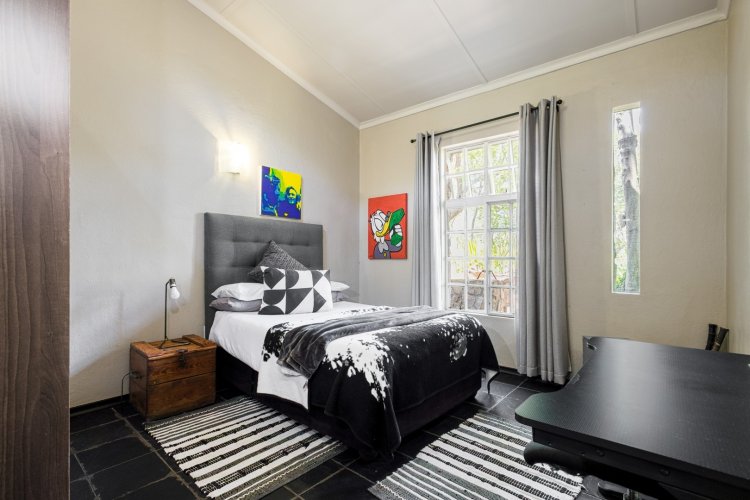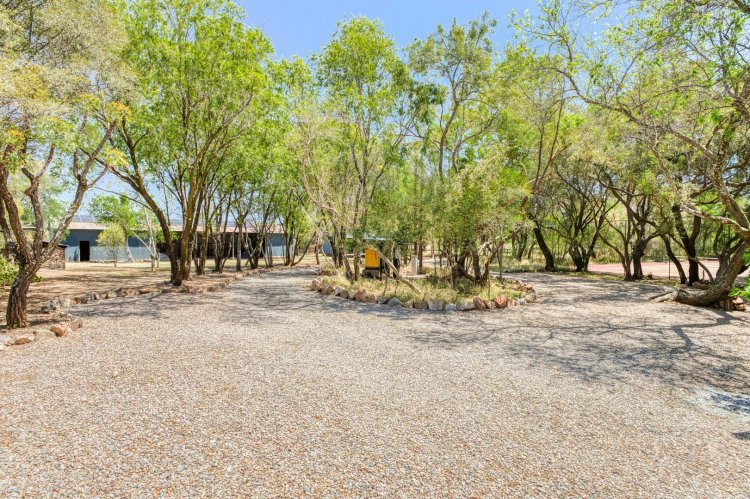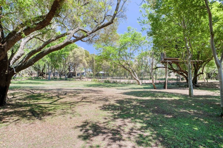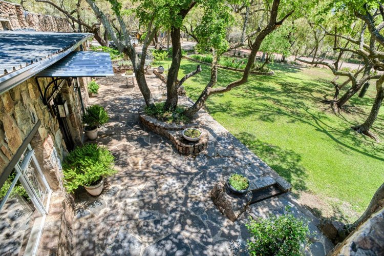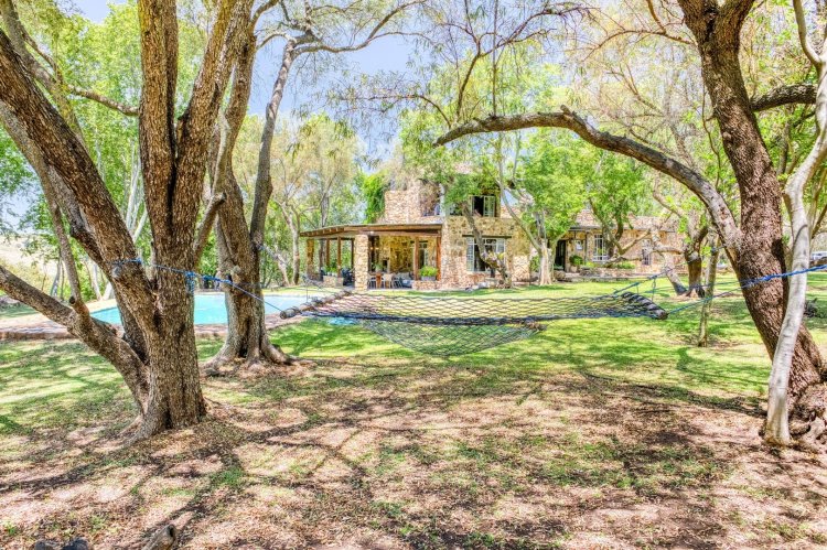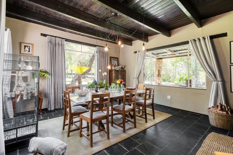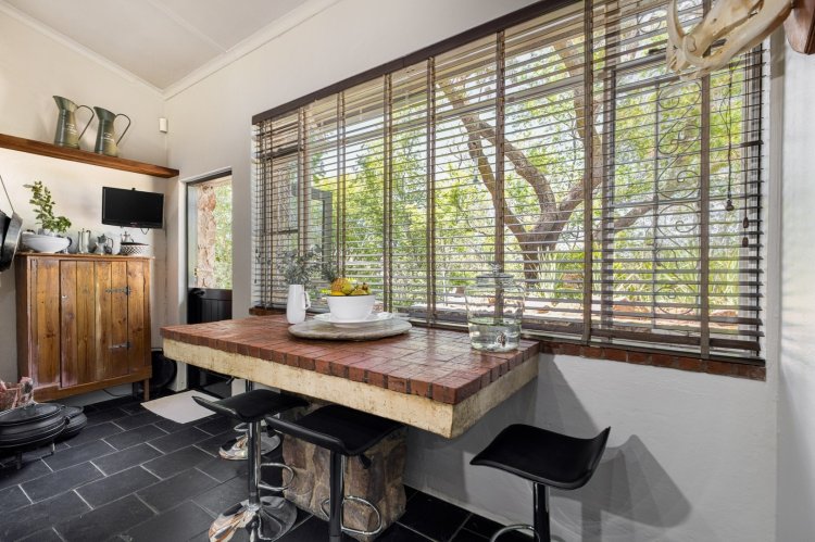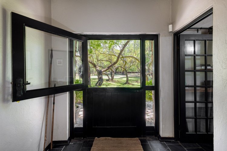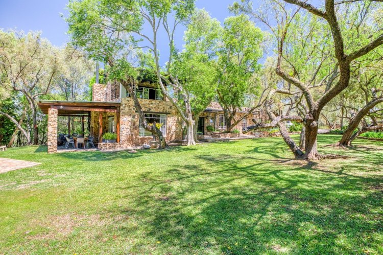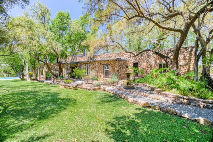 Kitchen with pizza oven and separate scullery Lounge walking out onto the stoep with a braai One bedroom and bath upstairs Two bedrooms with an office downstairs, with one bathroom The swimming pool with access to the river Tennis Court Generator with solar Borehole 2 outside storerooms