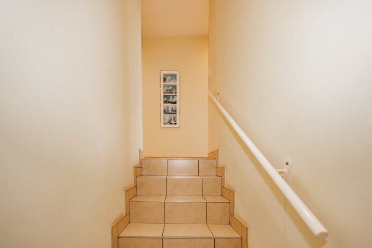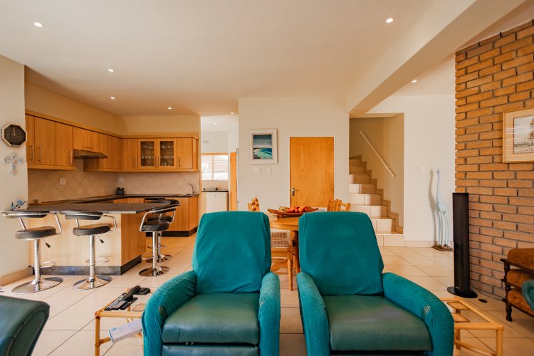 From the moment you enter, you are welcomed by a spacious open-plan living area filled with natural light. Large aluminium windows frame the ocean beyond, creating a calm and inviting atmosphere. Cleverly designed storage beneath the staircase adds practicality without compromising style.