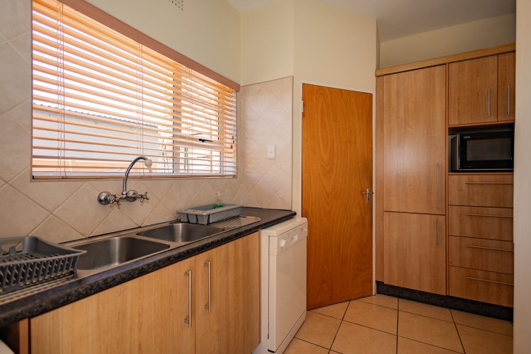 The kitchen truly is the heart of the home — fitted with an electric stove and oven, a prep bowl, and ample cupboard space. The separate scullery offers generous packing space, double basins, and two water points, making everyday living effortless. A door leads directly to the paved backyard, ensuring seamless indoor-outdoor flow.