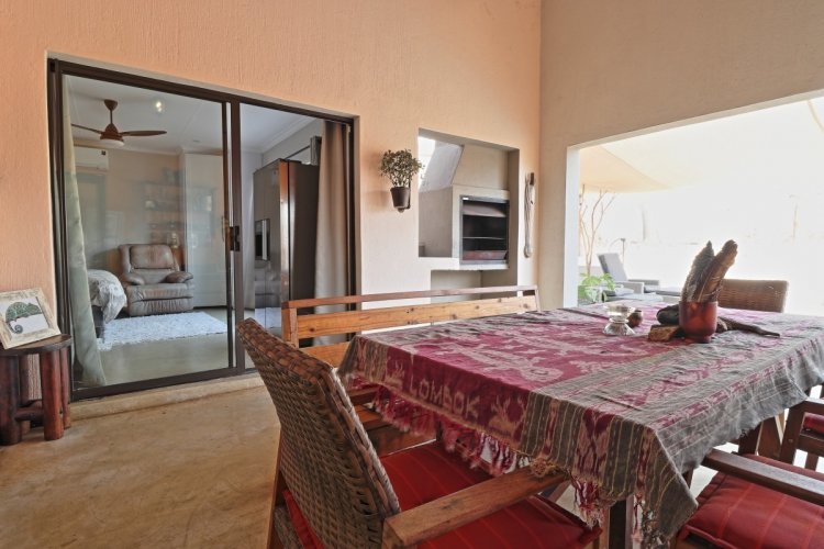 Outdoor Features: Entertainment Ready: A covered patio with a built-in braai overlooks the private pool, creating an ideal space for alfresco dining and relaxation. Extended Garage: A double garage includes one extended door, perfect for housing an open game vehicle. (Open game vehicle not included)