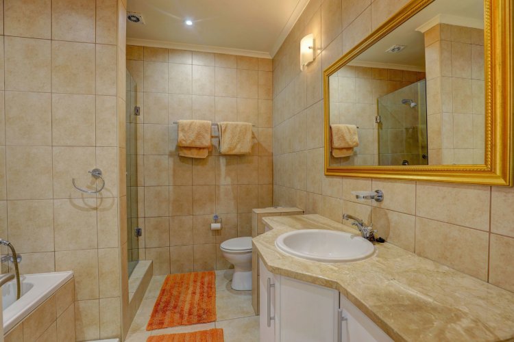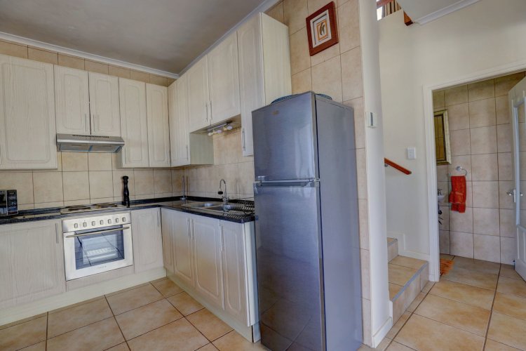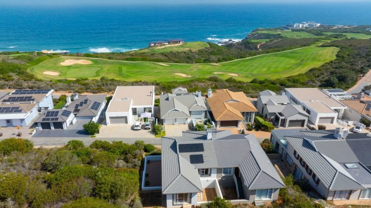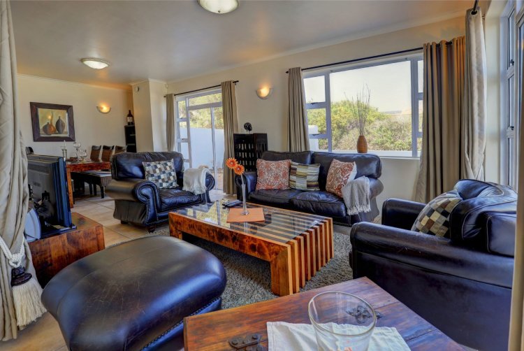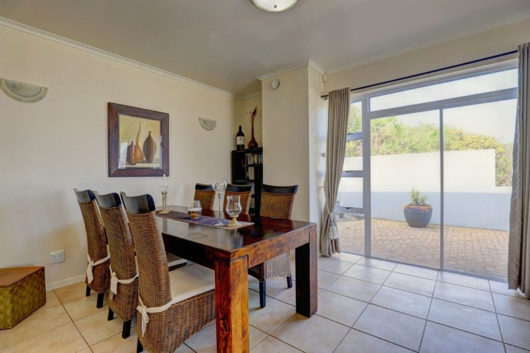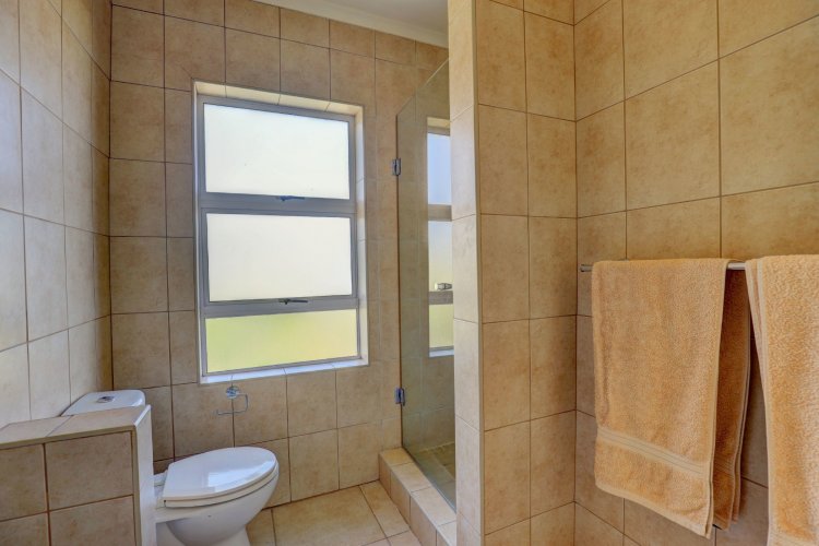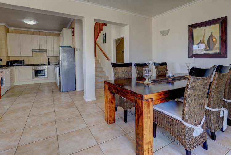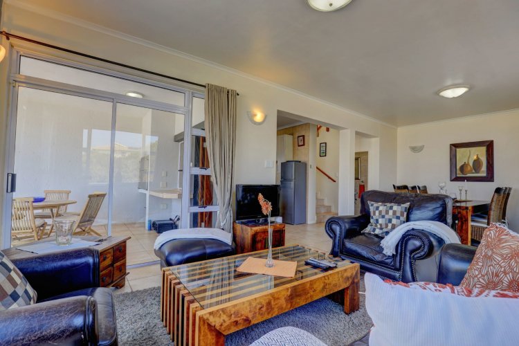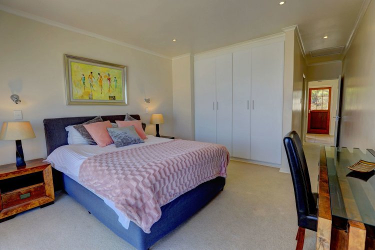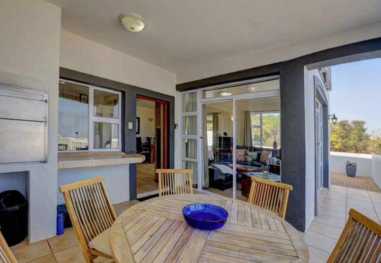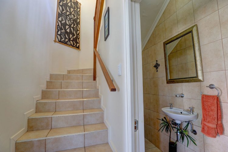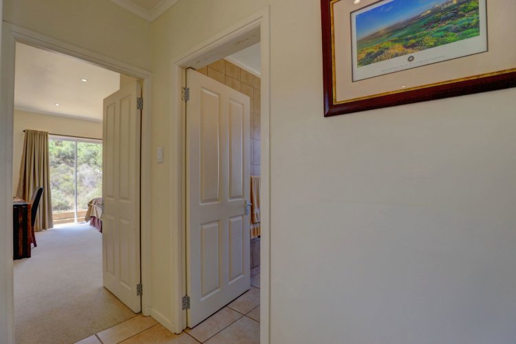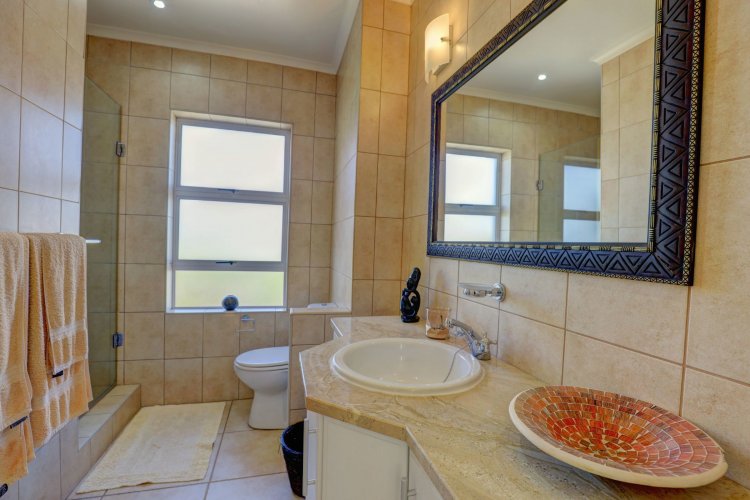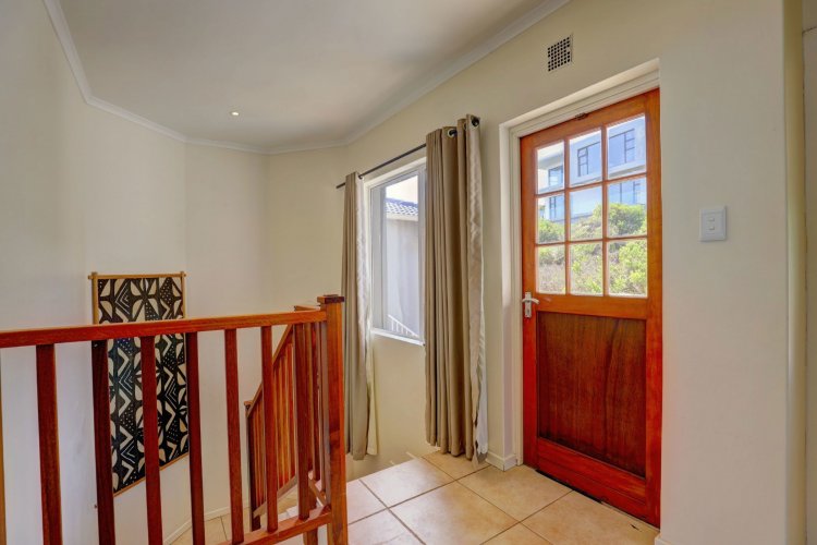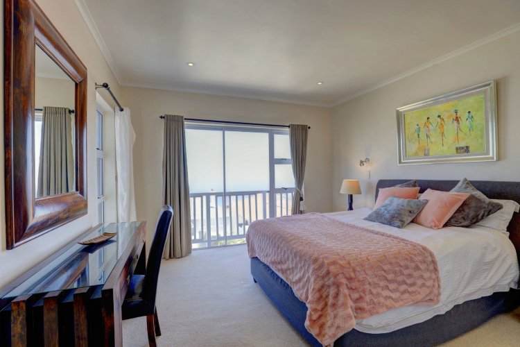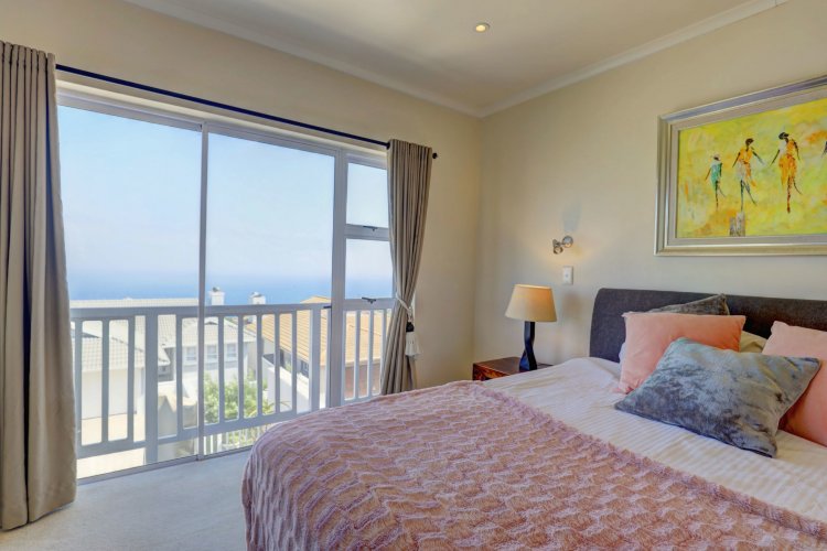 Upstairs, the main and second bedrooms are en-suite, both offering captivating views over Pinnacle Point and the ocean. The third bedroom enjoys the warmth of northern sunlight and has access to a full bathroom.