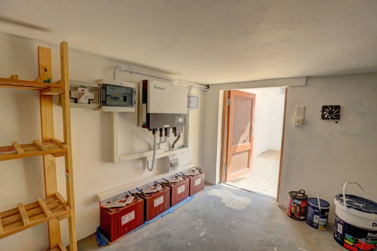 The enclosed courtyard in the back includes a large storeroom, and the property is equipped with an inverter and solar panels for everyday convenience.