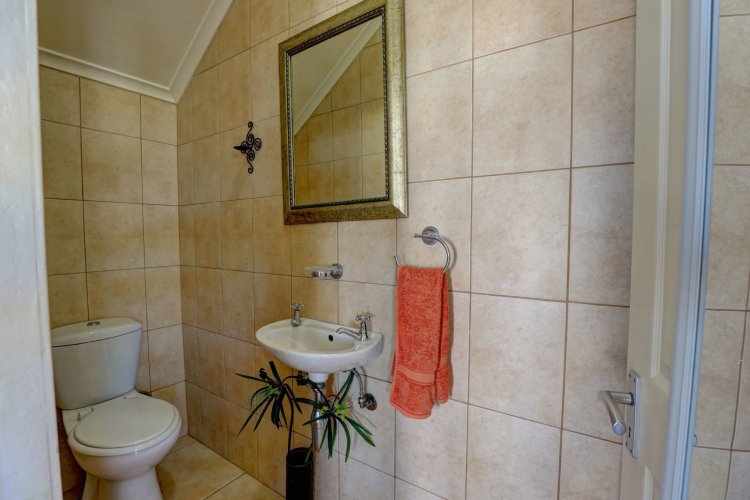 This home in Pinnacle Point offers seamless open-plan living with open open-plan kitchen, dining, and lounge area flowing through sliding doors to a patio and an undercover braai area. A guest toilet is conveniently positioned on this level.