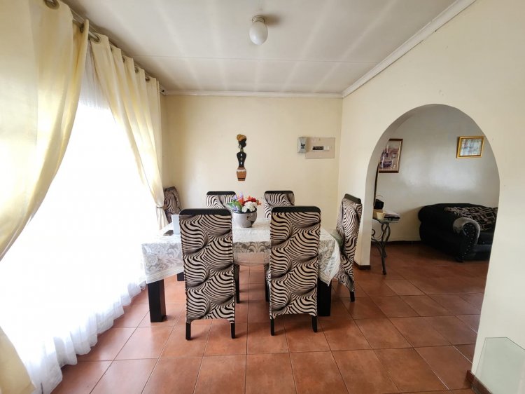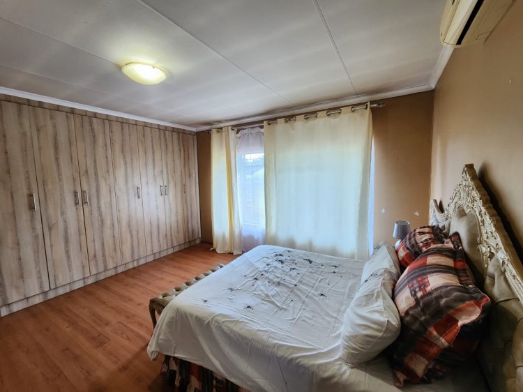 Property Features: • 3 Generous Bedrooms all with fitted cupboards. • 2 Lavish Bathrooms plus a separate toilet for added convenience. • Fully Equipped Kitchen with scullery, seamlessly connected to the dining area. • Spacious Lounge – roomy enough for comfortable family living and entertaining. • Air Conditioning in both the lounge and main bedroom for year-round comfort. • Borehole – ensuring water security and cost savings(needs a new pump) • Outside Back Room with Toilet – ideal for a helper, domestic worker, or could be utilised as a small rental income space.