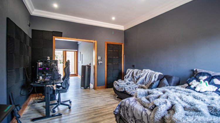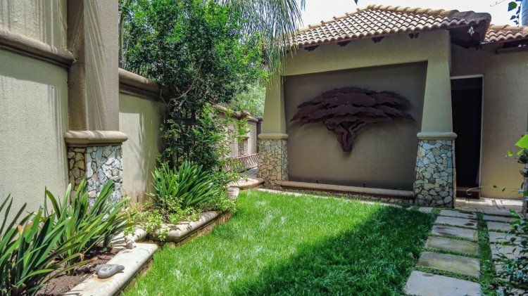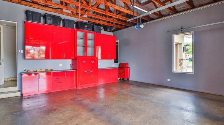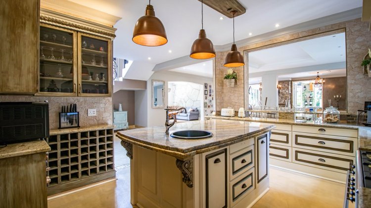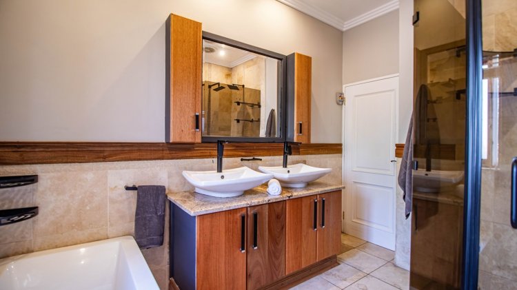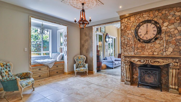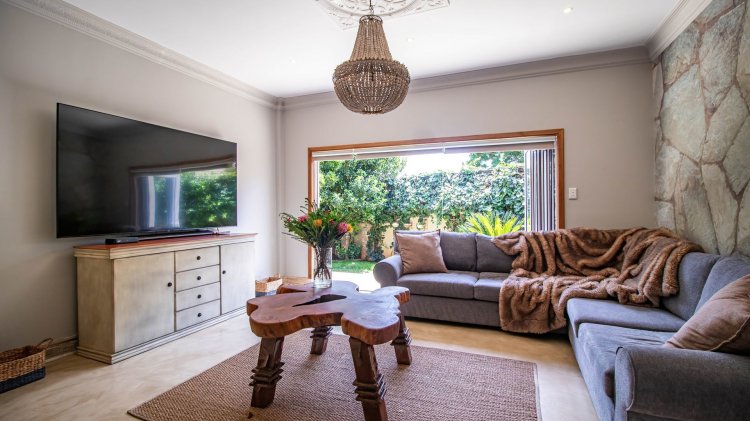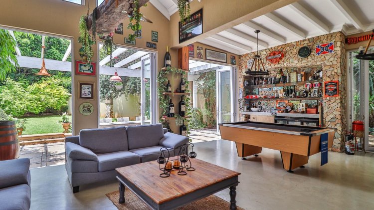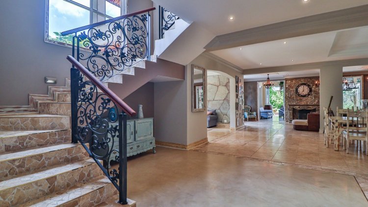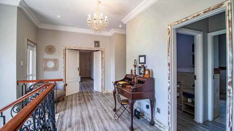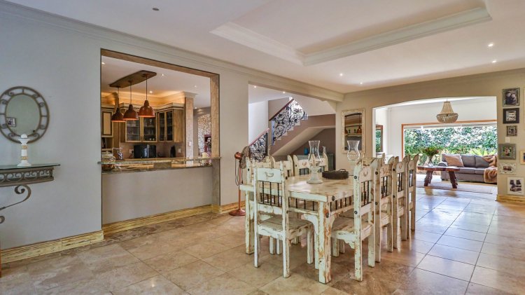 Practicality complements beauty at every turn. The property includes three garages, staff accommodation, a 10 000-litre back-up water system with borehole, and an impressive 8 x 5.5kVA solar system — ensuring efficiency, sustainability, and peace of mind all year round.