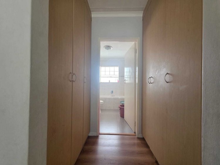 Upstairs, three well-sized bedrooms with built-in cupboards provide comfortable accommodation. The main bedroom features a walk-through wardrobe leading to a private en-suite bathroom, while the second and third bedrooms are serviced by a well-appointed family bathroom.