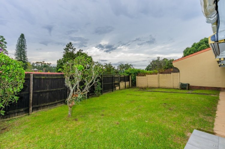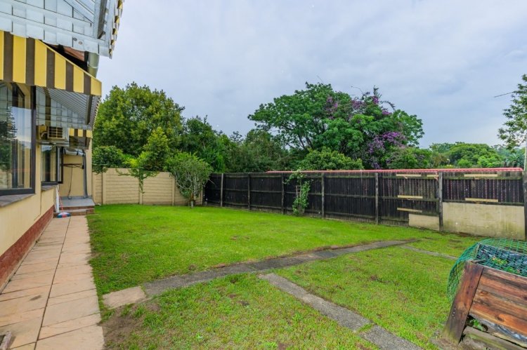 The covered, fully tiled patio extends your living space outdoors and leads into a private, manicured garden.