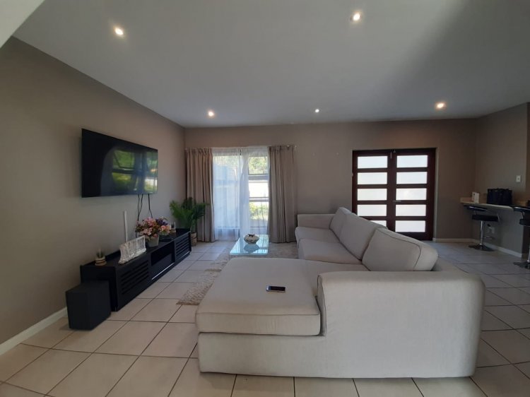 Discover contemporary living in this stylish double-storey townhouse located in a secure complex in Abbotsford, East London. The home offers three well-sized bedrooms (each with a balcony) and two modern bathrooms upstairs, creating a comfortable family retreat. Downstairs features an open-plan kitchen, lounge and dining area that flows effortlessly to a private backyard with a wooden deck and freestanding braai, ideal for entertaining. Parking is well catered for with two garages and additional open paved parking for one vehicle. The complex boasts controlled access, electric fencing and fibre connectivity, ensuring security, convenience and modern lifestyle living in a sought-after residential location close to amenities.