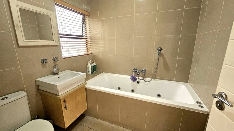 Step inside to a bright and spacious open-plan living area that flows seamlessly onto a small, manicured lawn – perfect for relaxing or enjoying a morning coffee. The generous kitchen offers ample cupboard space and leads into a separate scullery, which opens to a private courtyard with a washing line.