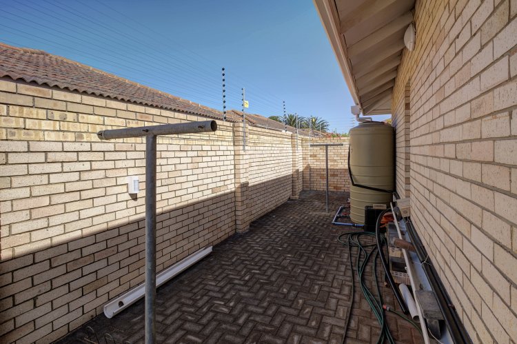 This spacious, newly painted family home offers a bright and welcoming atmosphere within a small, owner-occupied complex. Inside, you'll find three generously sized, carpeted bedrooms with stunning built-in cupboards and two full bathrooms. The open-plan kitchen is well-equipped with an eye-level oven, hob and extractor, and a separate scullery enhances convenience. Flowing seamlessly from the kitchen, the lounge, dining area and a dedicated braai room connect beautifully to the north-facing garden, complete with a water tank and pump for easy garden maintenance. Tidy well kept garden. The property includes a remote-controlled double garage with direct access into the unit and the complex is securely fenced with electric fencing. Additional features include fiber connectivity, Atlas alarm system with beams, Trellis security doors and ceiling fans throughout. Outside Braai. Admiralty Way, close to Summerbreeze Spar. Small complex. Mainly owners. Monthly Levy: R2 700 , including water and sewerage. Rates: R1 824 Dwel: 174 sqm. Viewings are by appointment only. Don’t miss out on this lovely home. Ideally situated near public transport, beaches, shopping centers, schools and higher educational facilities as well as entertainment venues. This property offers both convenience and comfort. Owner relocating after many years of happy living. Easy access. Call today. Serious seller. All fair written offers will be submitted.