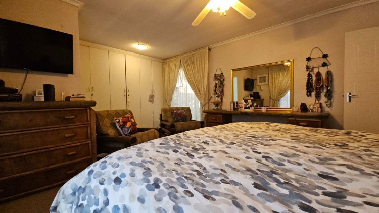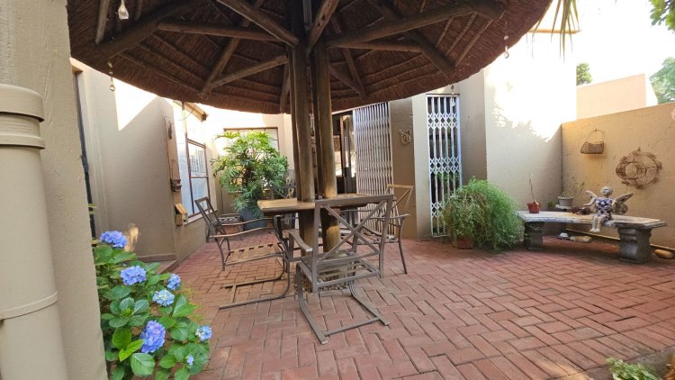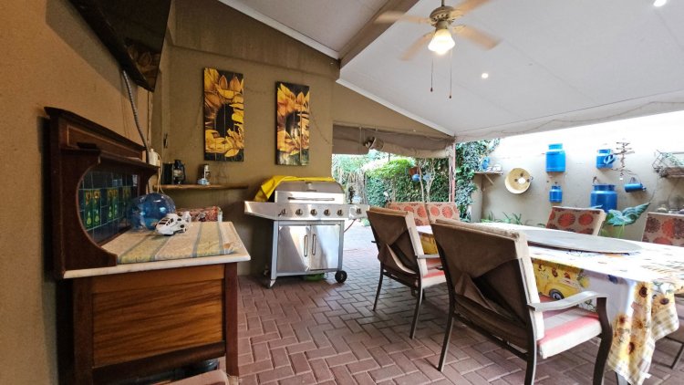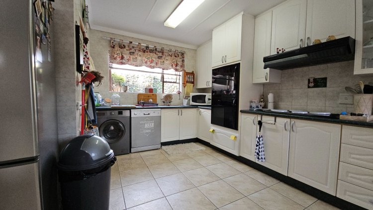 Well-taken care of townhouse with lounge, dining room and neatly fitted kitchen with breakfast nook, eye-level oven and hob. Three bedrooms. 2.5 bathrooms, main en-suite. Undercover patio. Double garaging.