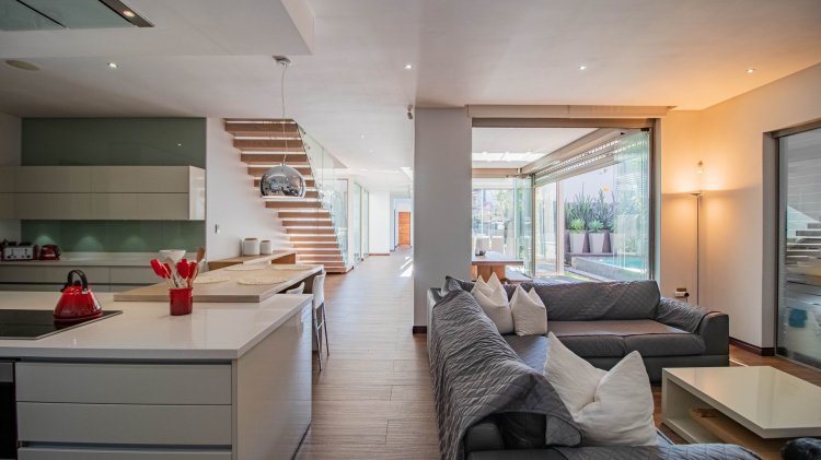 Welcome to One on Graver, an architectural masterpiece set in the heart of the prestigious Bedfordview community. This exceptional residence enchants from the moment you arrive — framed by triple-volume glass, sleek aluminium finishes, colourful water lilies and a lush landscaped garden. Designed by ANWAR DEEDAT Architects