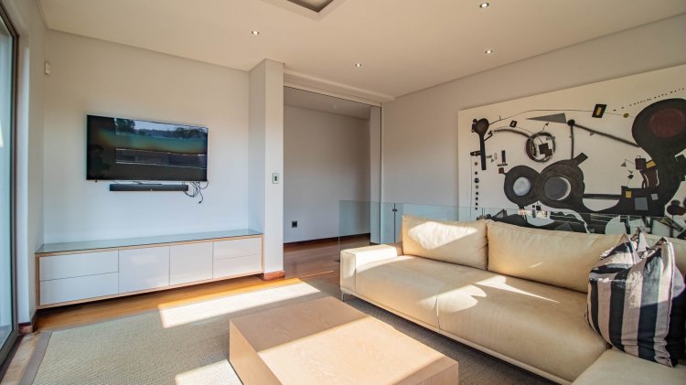 FEATURES Every room has been meticulously designed to balance luxury and functionality. • A MasterChef kitchen is fully automated, with built-in conventional oven, microwave, fridge and coffee machine. It is elegant, white, and grey Duco finishes • A grand alfresco dining and braai area overlooking the pool, patio and sun deck lounge — perfect for entertaining • Expansive living spaces including two formal lounges, a dining room and a luxurious television room • A downstairs study with adjacent bathroom — ideal for working from home • A dedicated hobbies room for mom and the children