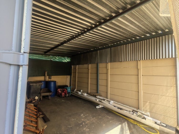 3 Garages, a shipping container for a workshop. 1 Carport and a caravan carport. Water tank-JOJO Vegetable garden. Braai/entertainment area.