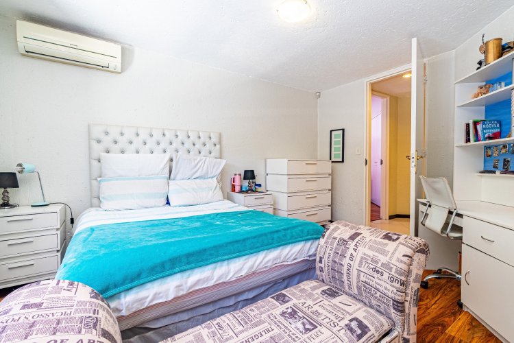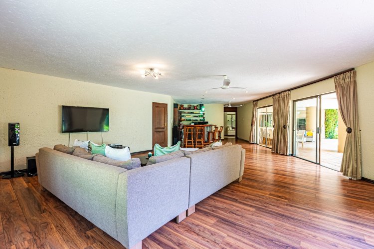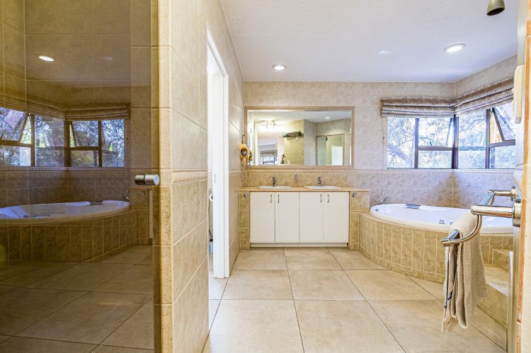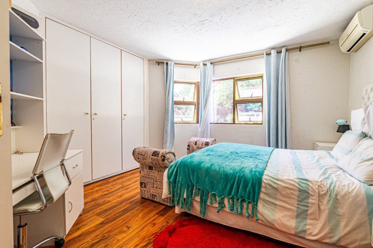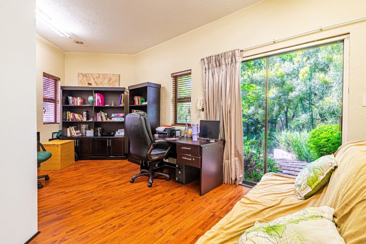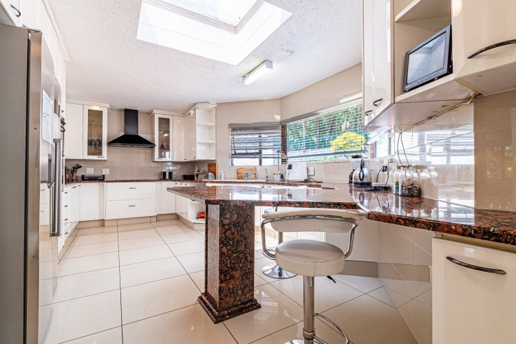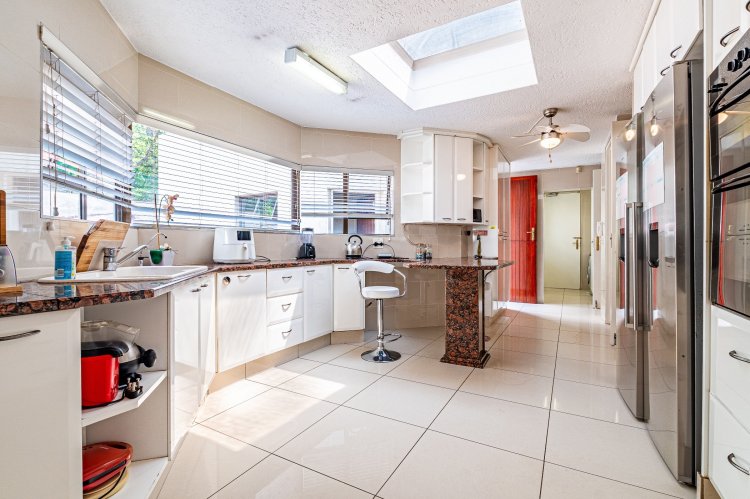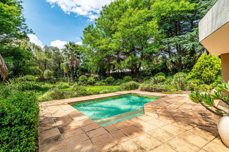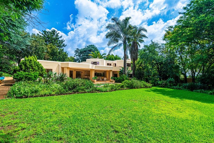 • Secure, boomed enclosure within a small cluster of modern cubic-style homes • Large ±3,300m² stand with established garden • Light-filled home with skylights and internal atriums • Four large bedrooms, each serviced by its own bathroom • Main bedroom with Jacuzzi bath, double vanity, separate toilet, and his-and-hers walk-in dressing rooms • Four spacious reception rooms opening onto a covered patio • Covered patio overlooking a swimming pool and expansive garden • Kitchen with breakfast bar, walk-in pantry, and separate scullery • Five automated garages plus additional secure undercover parking behind a gate • Generator and water tanks • Domestic accommodation and large drying yard • Separate self-contained cottage with bedroom, lounge, kitchen, and full bathroom • Suitable for extended family, home office use, or rental income • Close to St Stithians, Bryandale Primary, Bryanston High and Primary • Convenient access to shops and Sandton