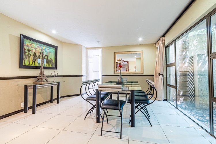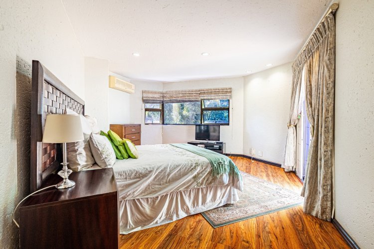 Situated on a beautiful, tree-lined, boomed road in Bryanston, this well-positioned home is set within a secure enclave of modern residences. The property offers an established garden, excellent space both indoors and out, and a level of garaging and infrastructure that is increasingly rare at this price point.