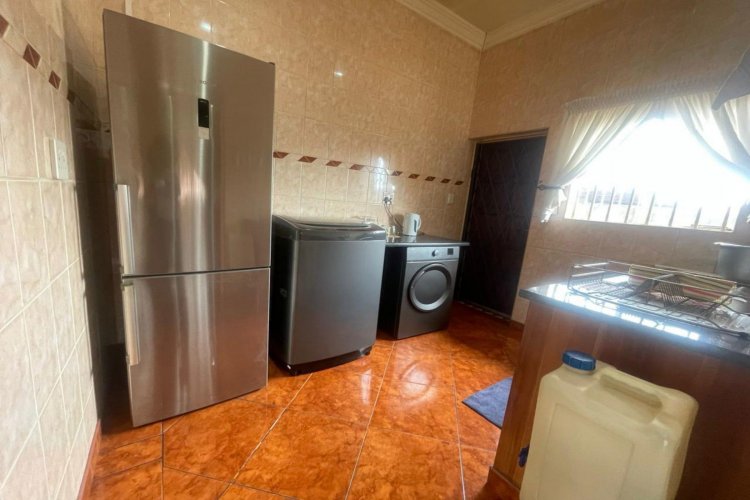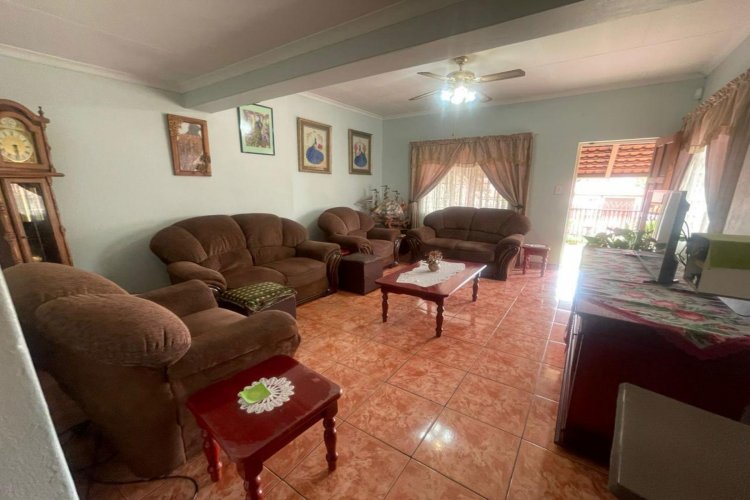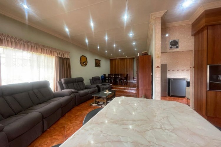 The main house welcomes you with warmth and space. It boasts 4 generous bedrooms, 2 bathrooms (including a modern en-suite), and bright, flowing living areas that include a lounge, dining room, and a well-appointed kitchen perfect for family gatherings. Outside, you'll find 2 garages and 2 carports, providing ample parking for everyone, along with staff quarters for added convenience.