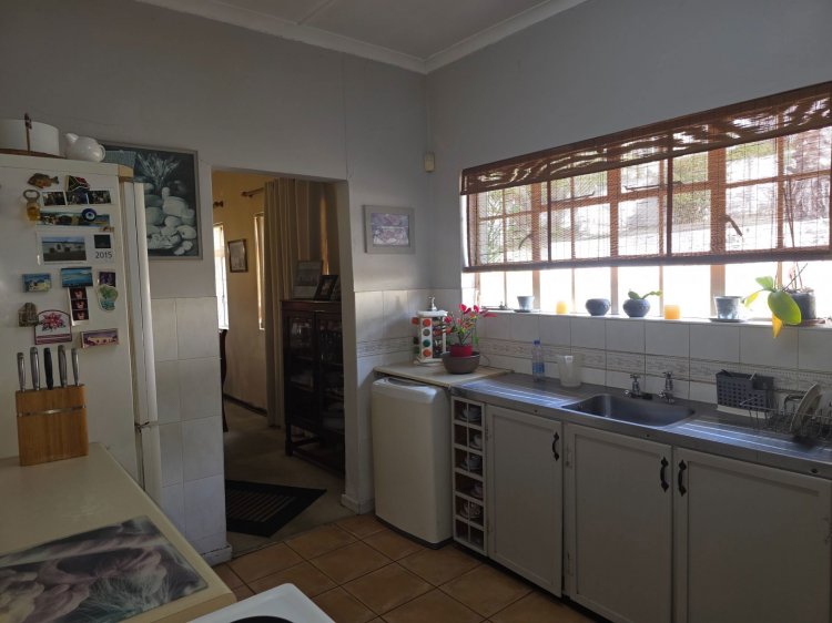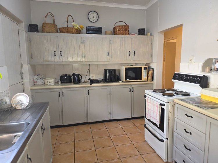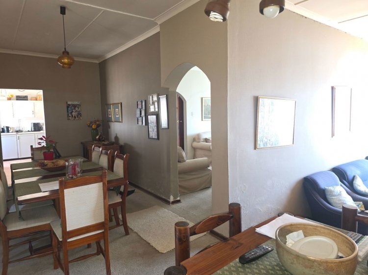 Exclusive mandate! This much-loved family home sits comfortably in a pretty residential suburb, its white painted exterior and cottage pane windows adding to its street appeal. Slightly elevated, it has a brick paved driveway that leads up to a double carport, garage, and the front door. From the stone-floored entrance hall, the home welcomes you into a large, carpeted lounge for more formal occasions, and then through an archway into an L-shaped TV room and dining room with tranquil garden views and a built-in braai. A few steps down is a cosy, tiled bedroom with an en suite bathroom – perfect for guests, extended family or even as an office. Connected to the dining room by another archway is the farmstyle kitchen, which is equipped with a freestanding stove / oven, double sink, and stacks of wooden cupboards. Practical and with a touch of whimsical country charm, it's ready and waiting for its new chef. Down the passage are three more bedrooms, all generously proportioned with built in cupboards and beautiful wooden floors. The main bedroom, with its own en suite bathroom and direct access into the back yard, is a haven for parents who juggle it all and deserve a little luxury after hours! For everyone else, there's a third bathroom, tiled from floor to ceiling, and fitted with a relaxing bath, basin, and toilet. Burglar bars and security gates keep the property safe, and the fully enclosed backyard is perfect for children and pets to romp for hours. Other great features are light / fan ceiling combinations to keep hot summers at bay, and wonderful proximity to parks, schools, shops and workplaces. Cherished by just one owner for 50 years, and with TLC this this could be the new memory-maker you've been searching for – if so, please contact me to arrange an appointment to view it.
