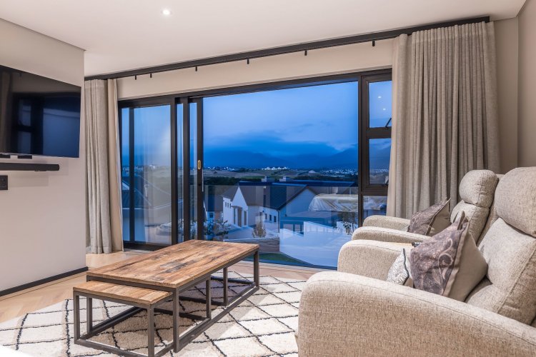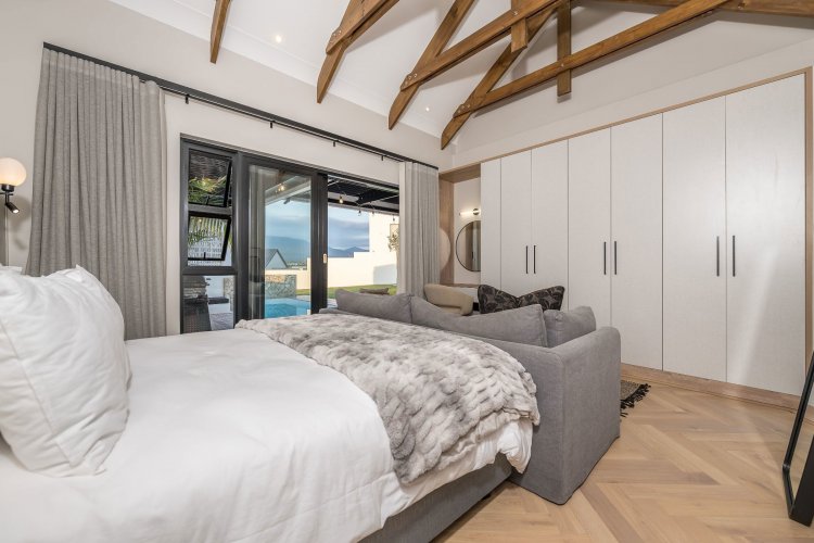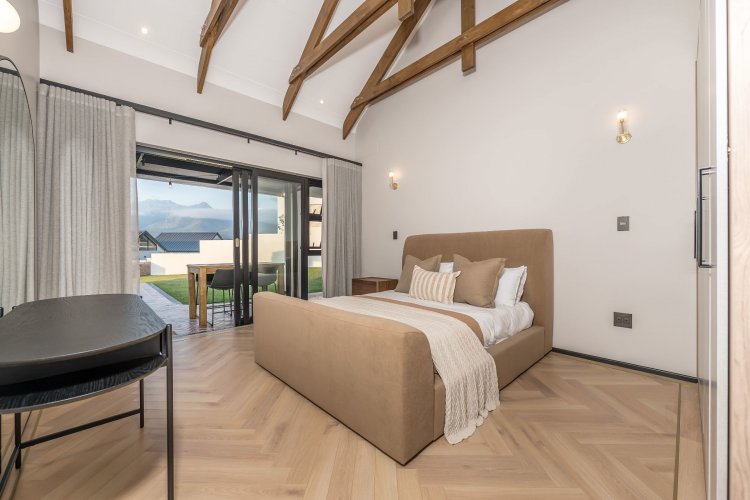 Master bedroom with ensuite double bathroom/dressing room is upstairs with lounge/TV area and full mountain views. North facing second and third bedrooms share a full bathroom. Sliding doors leading onto the patio from both bedrooms.