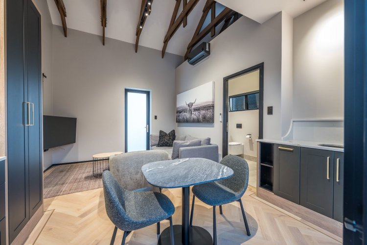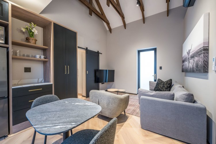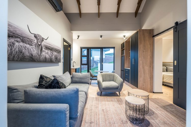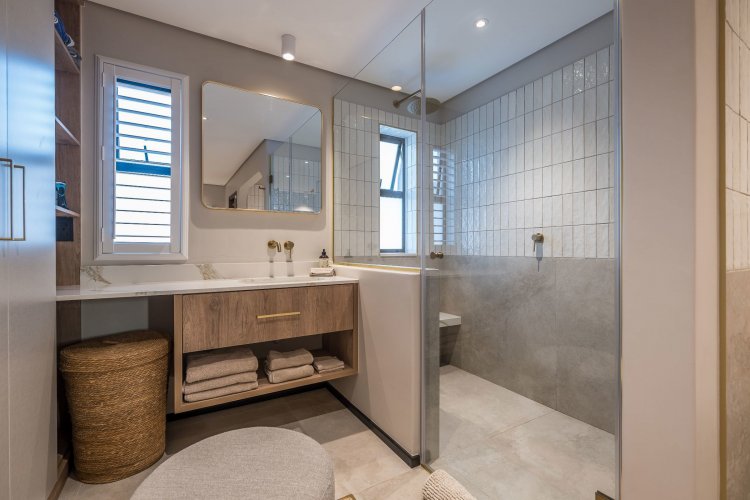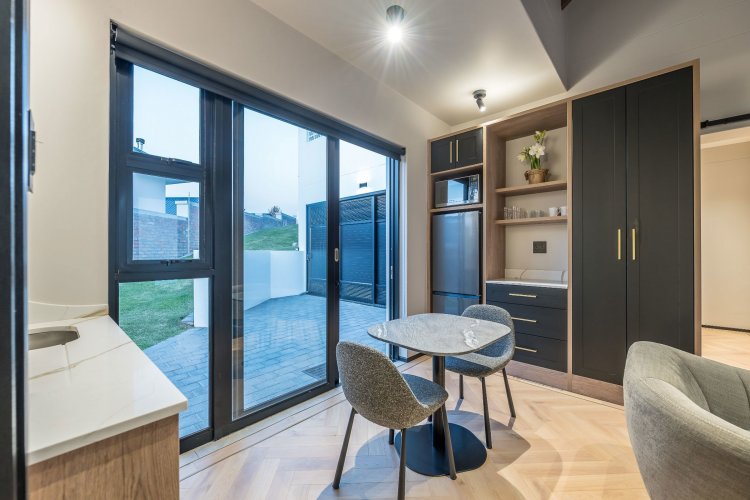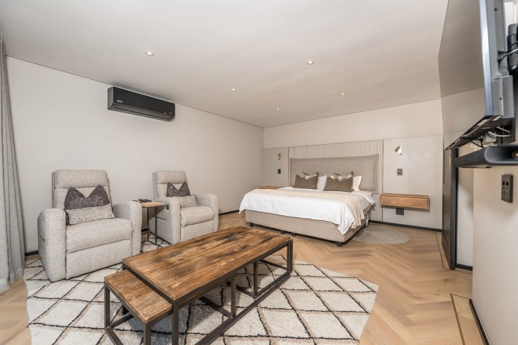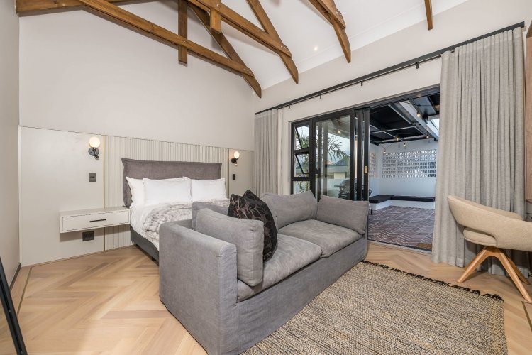 On the lower level is a self contained flatlet (fourth bedroom) with bedroom, living area, kitchenette and bathroom offering privacy for guests