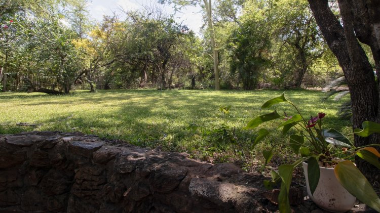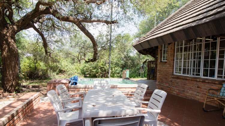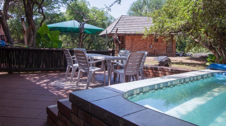 The garden provides pleasant outdoor space to enjoy the natural surroundings, making this a versatile and well-appointed property in Marloth Park.
