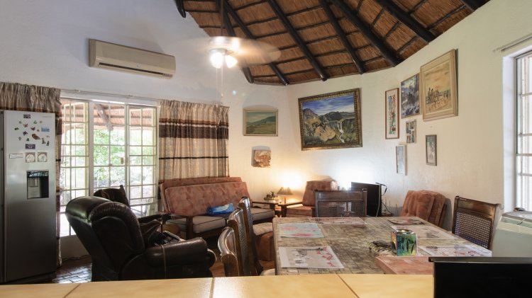 Located in Marloth Park, this single-storey home offers generous accommodation and practical features designed for comfortable living. The property comprises three well-sized bedrooms and two bathrooms, providing ample space for family and guests. The living areas flow easily, creating a functional and welcoming environment suited to both everyday living and entertaining.