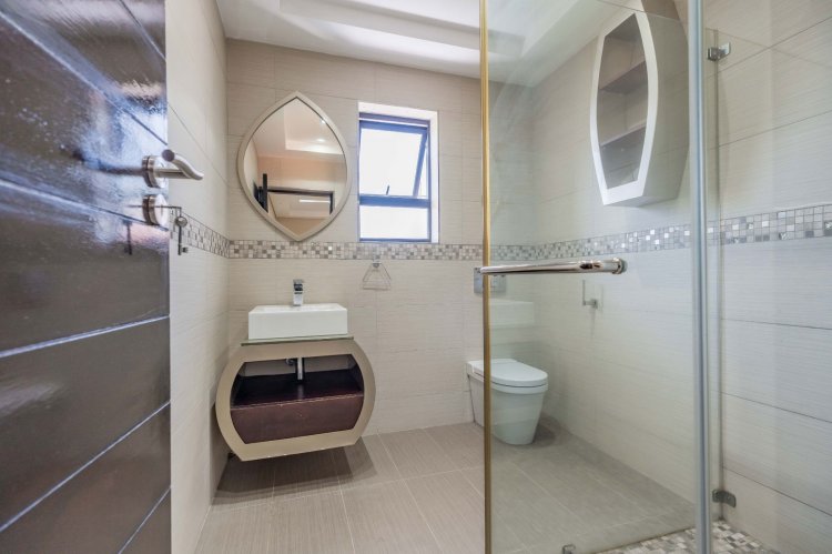 The modern kitchen is a dream, equipped with sleek finishes and ample storage. Multiple living and dining spaces open out onto a sparkling swimming pool, surrounded by a landscaped garden that includes a tranquil indoor fish pond — a true retreat from the hustle and bustle.