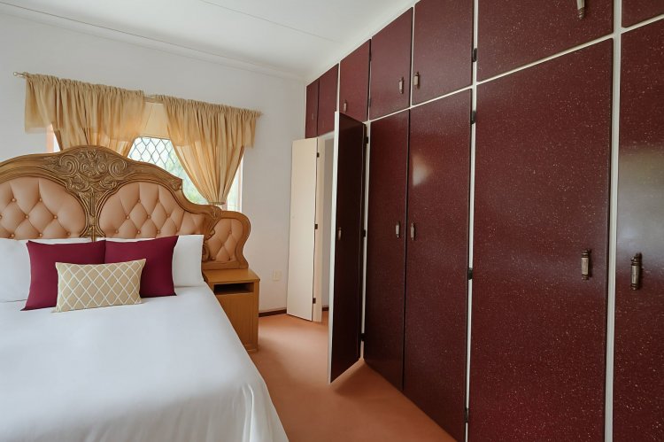Inside, the home features 4 spacious bedrooms, all fitted with built-in cupboards and carpeted floors. The main bedroom includes an en-suite bathroom, and a second bedroom also offers its own en-suite, providing added convenience and privacy. A third full bathroom services the rest of the home.
