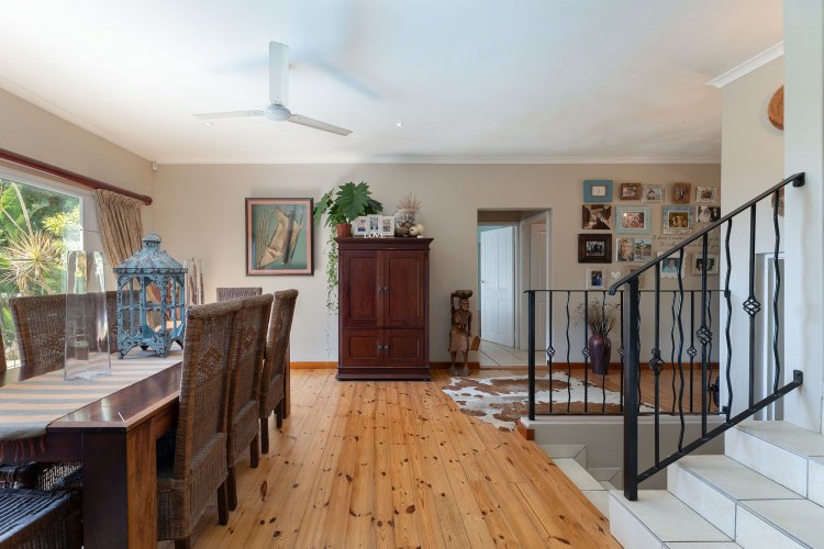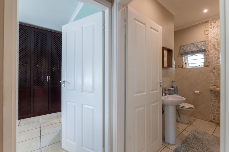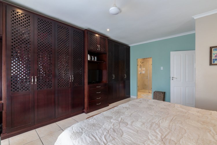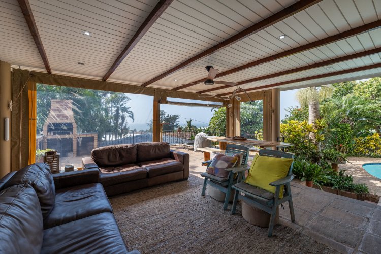 Upstairs, three generously sized bedrooms, each with built-in cupboards are complemented by a full family bathroom. A large TV lounge provides an ideal space for children or relaxed family time, all enhanced by breathtaking sea views. A separate one-bedroom flatlet offers excellent potential for rental income, a private teen pad, or guest accommodation. Additional features include staff quarters with a kitchenette and ample secure off-road parking.