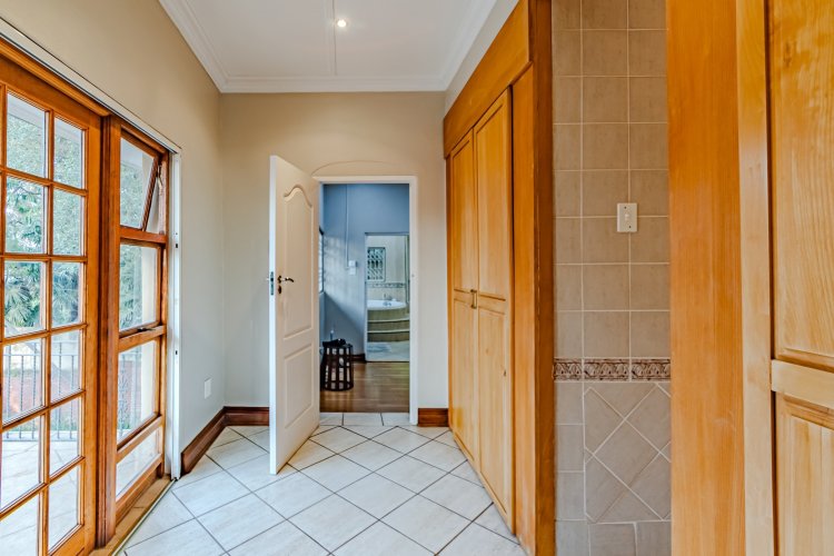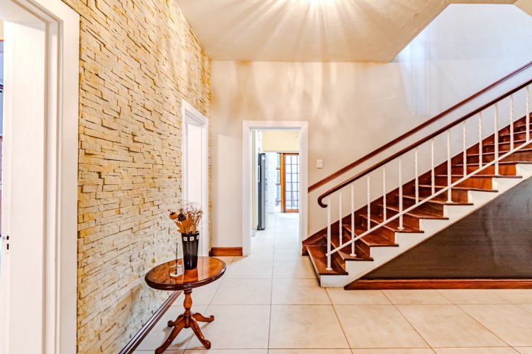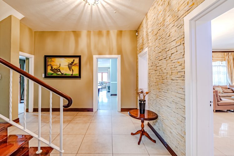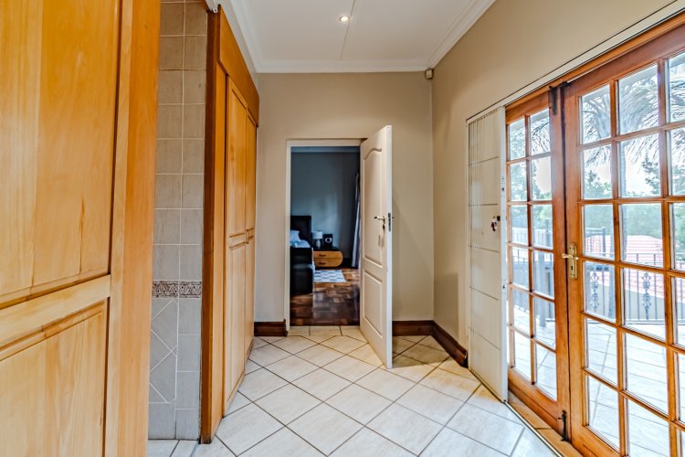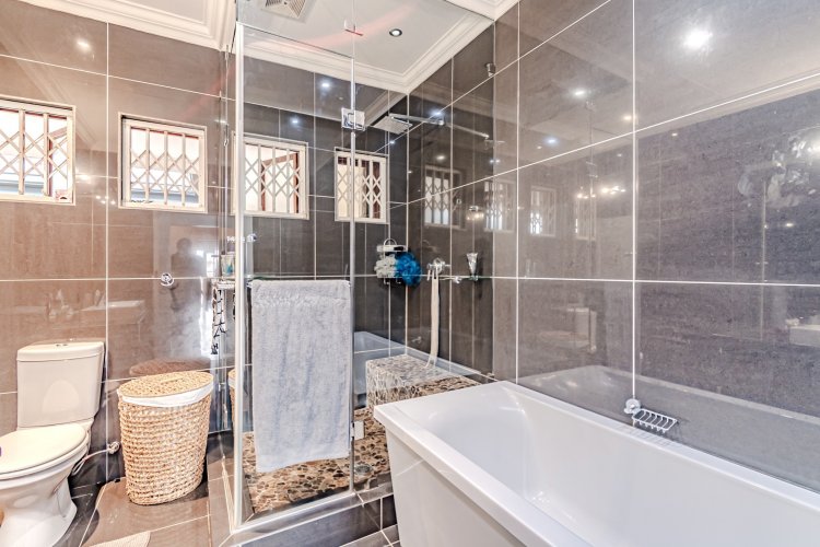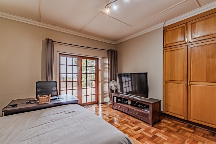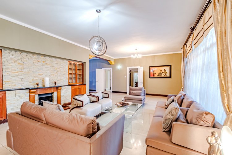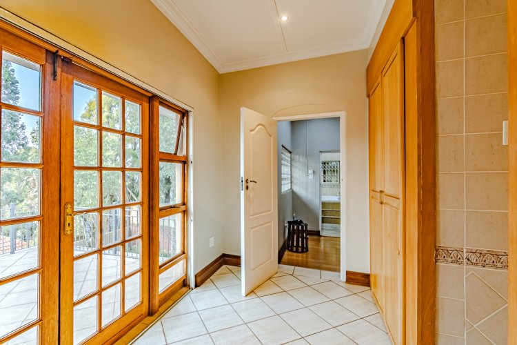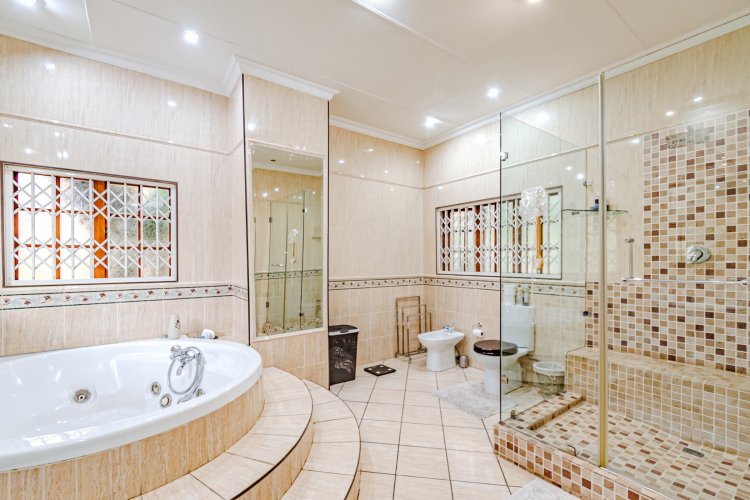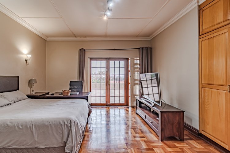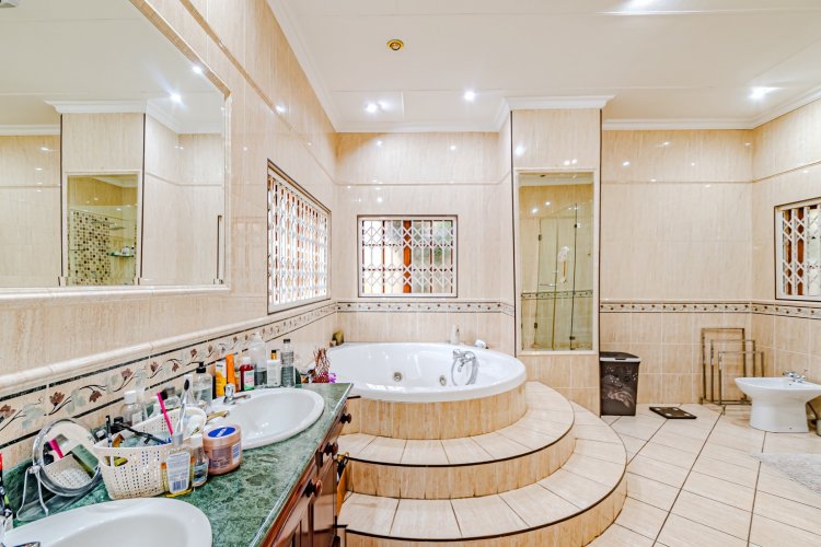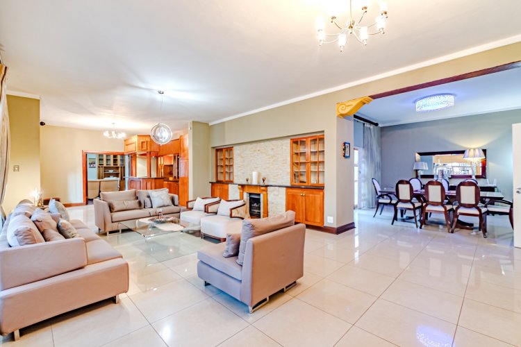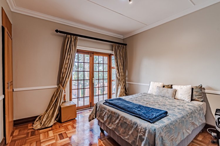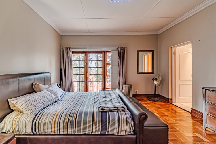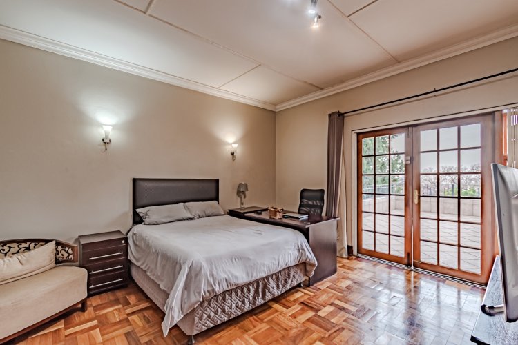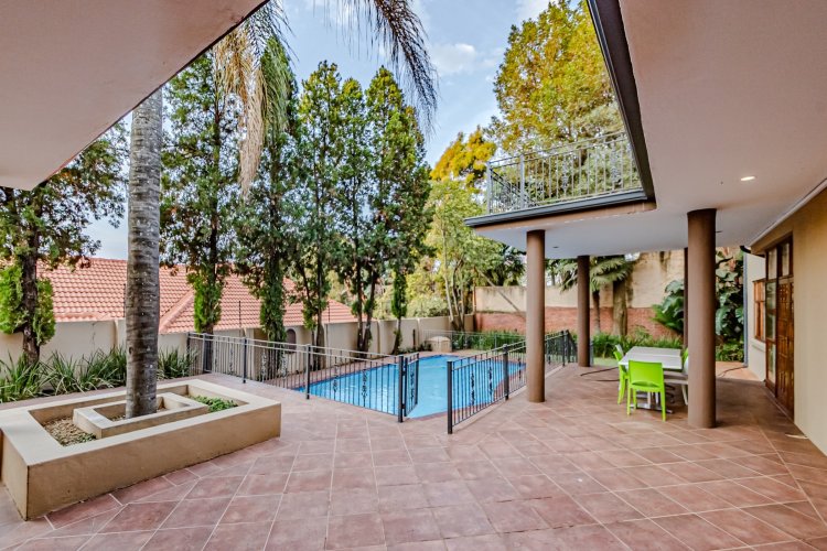 Property Highlights: - Elegant Living Areas: Three spacious living areas, two featuring cozy fireplaces for those relaxing evenings, and an entertainer's built-in bar, ideal for hosting glamorous gatherings. - Charming Kitchen: A large, well-appointed kitchen with abundant cupboard space and a separate wash-up area, perfect for easy meal preparation. - Luxurious Bedrooms: Four generously sized bedrooms, three of which open onto a sprawling balcony with breathtaking views, ideal for relaxation. - Opulent Main Suite: The extra-large main bedroom offers a walk-in closet and a lavish en-suite bathroom with a corner bath and spacious shower, providing ultimate comfort and luxury. - Functional Layout: A convenient laundry room and linen cupboard on the top floor, along with two en-suite bathrooms and a guest toilet downstairs, ensure ease and functionality. - Exquisite Finishes: Stunning wood and designer flooring throughout the home, adding warmth and timeless elegance to every space. - Outdoor Entertaining: A magnificent pool complements the home's entertaining features, providing the perfect backdrop for relaxing afternoons and family gatherings. - Ample Parking: Secure tandem garage for 4 cars, along with additional parking for guests. - Staff Quarters: Complete with 3 rooms, offering privacy and comfort for live-in staff. - Borehole and irrigation system - No Load Shedding: Experience uninterrupted luxury with this property's exemption from load shedding. - Prime Location: Situated in Safe Waterkloof, one of Pretoria's most secure and sought-after neighbourhoods, close to elite schools, top dining, and shopping.