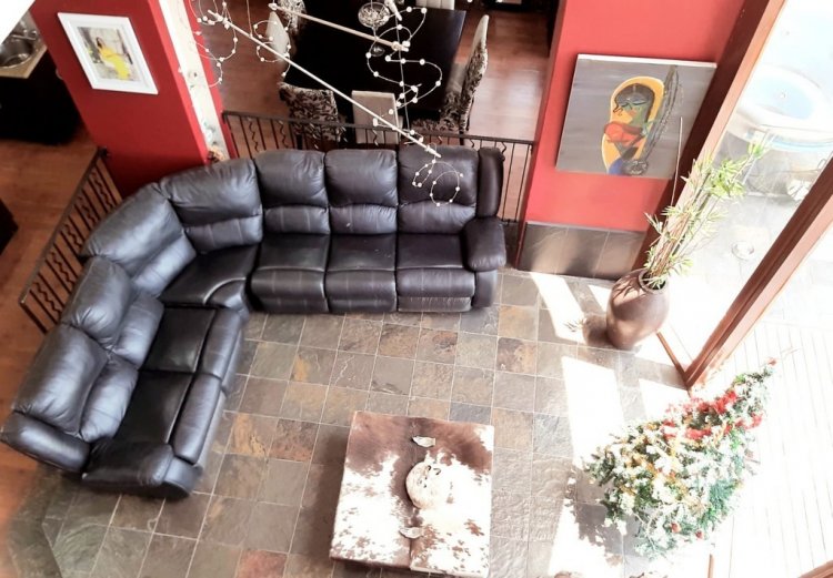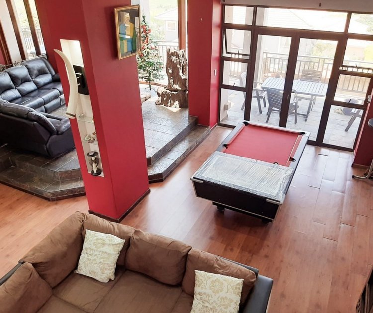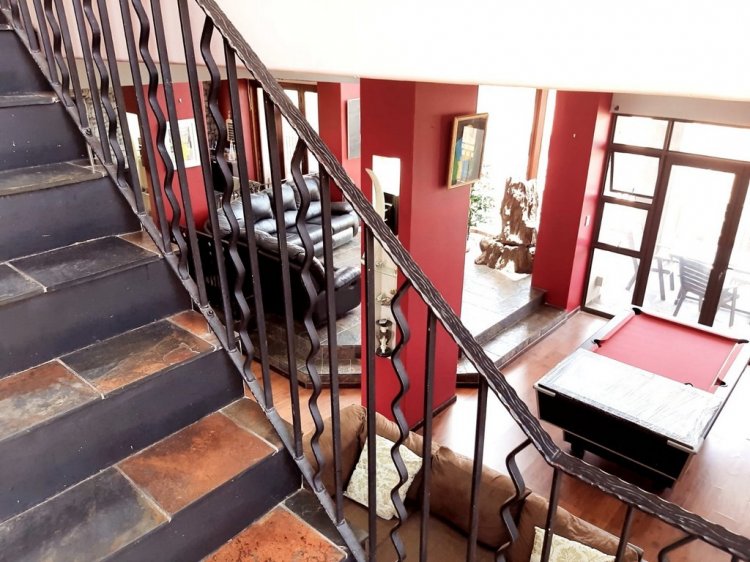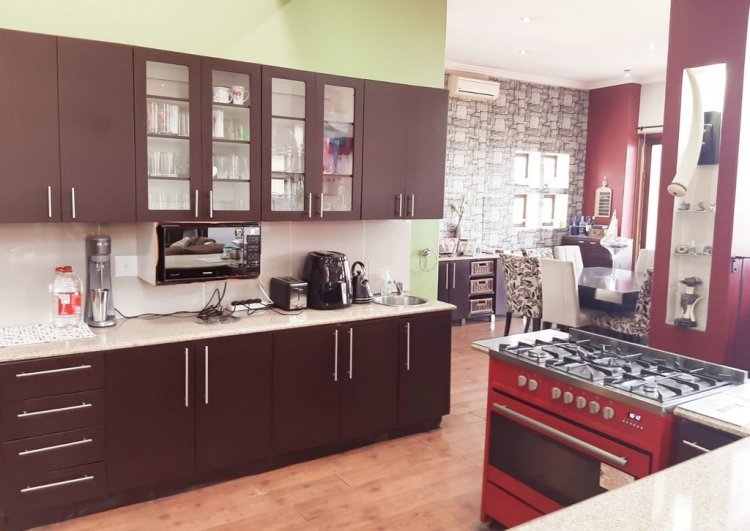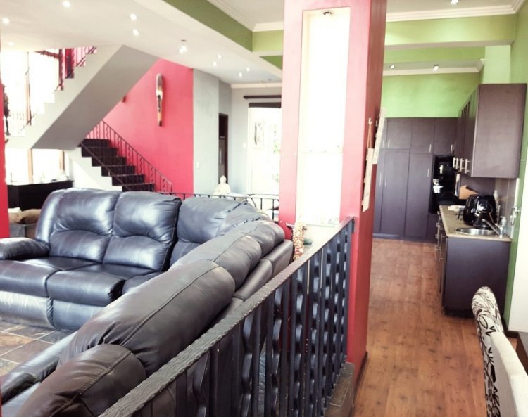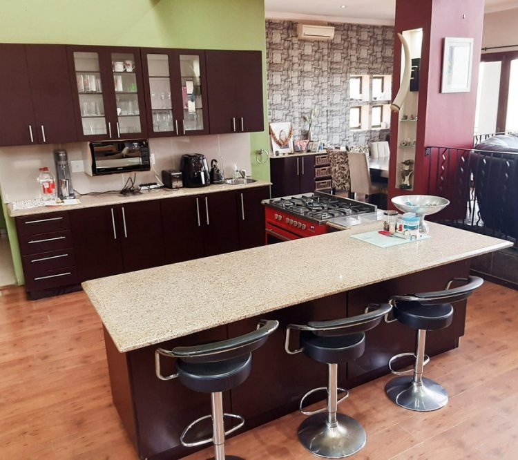 Downstairs, the home impresses with a dedicated entertainment area, including a lounge and pool room that flows seamlessly onto a covered verandah. Outside is a built-in braai. The open plan second lounge, dining area, and a beautifully designed kitchen create a warm, inviting space for family living.
