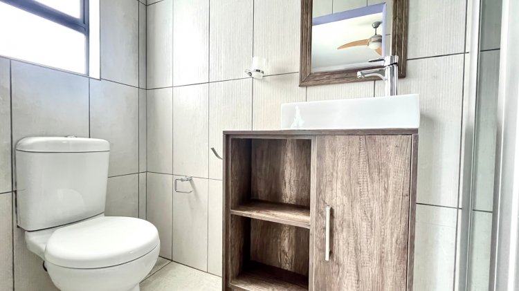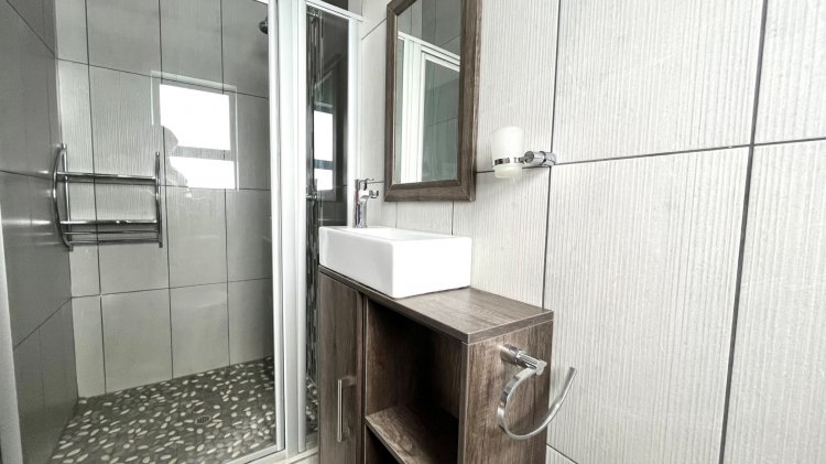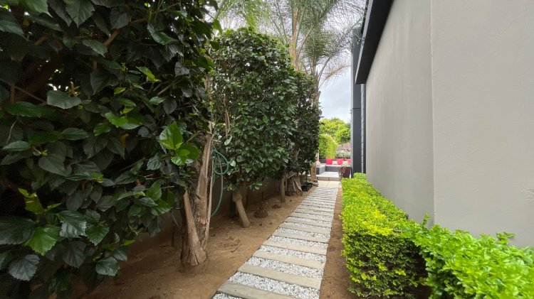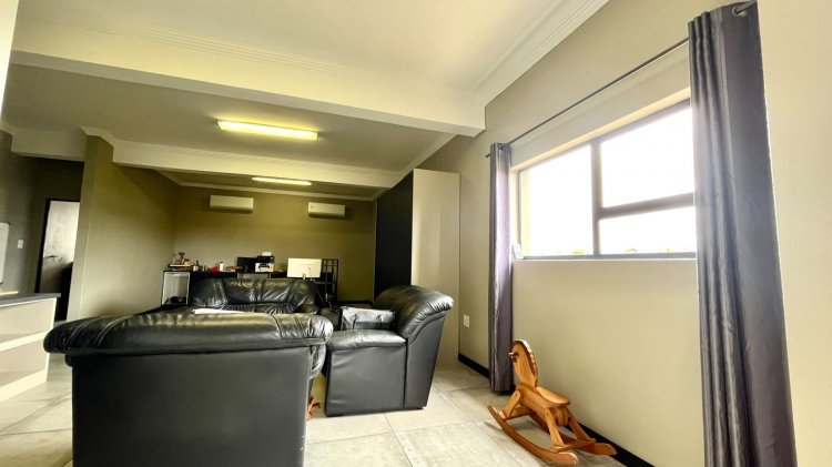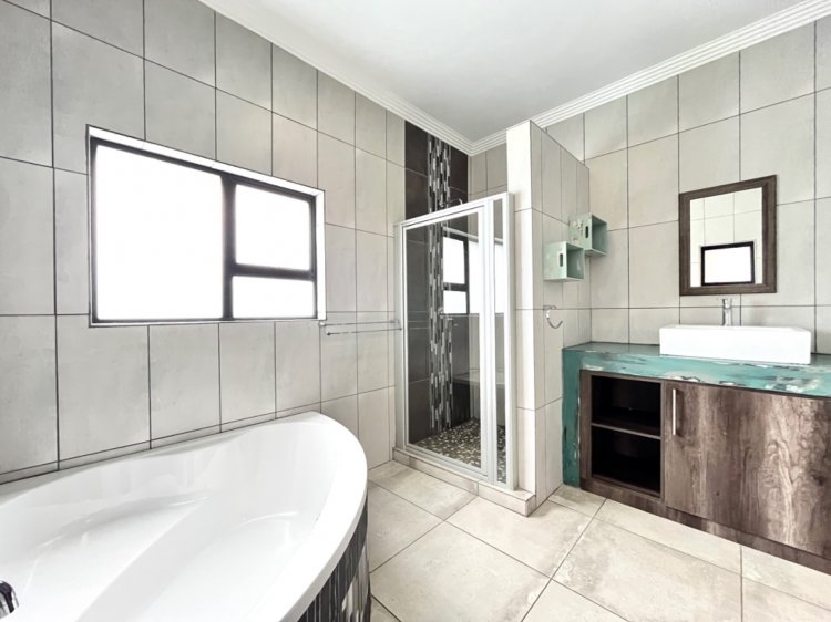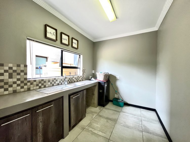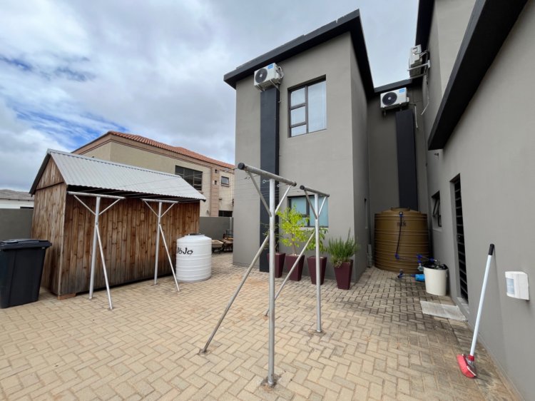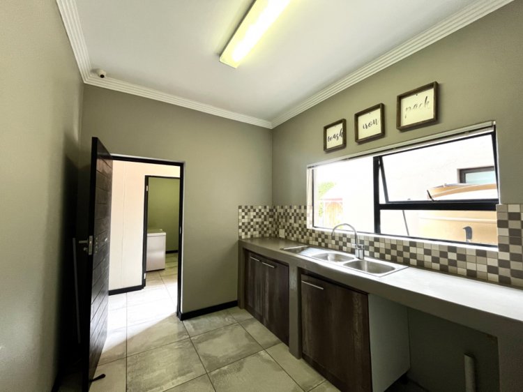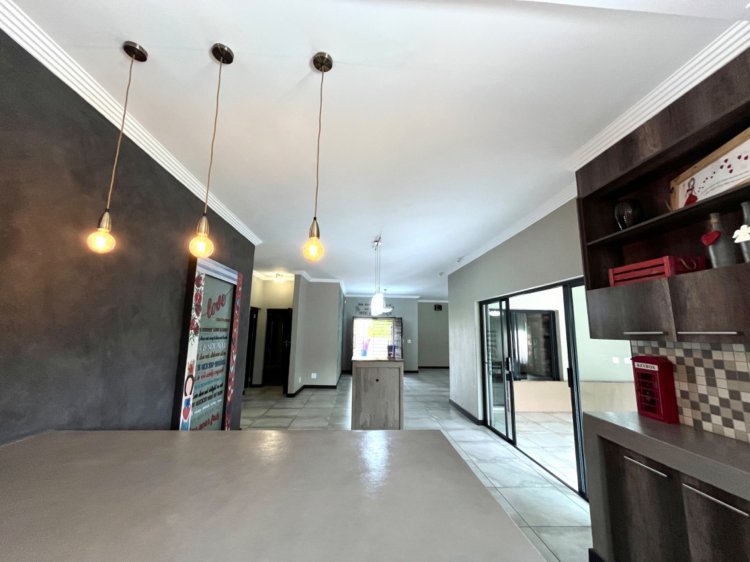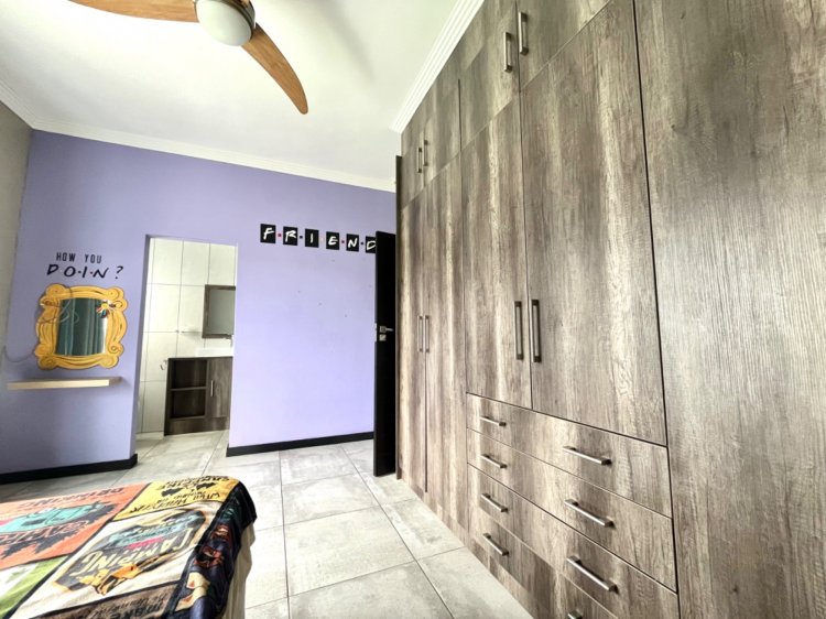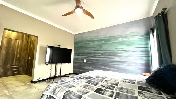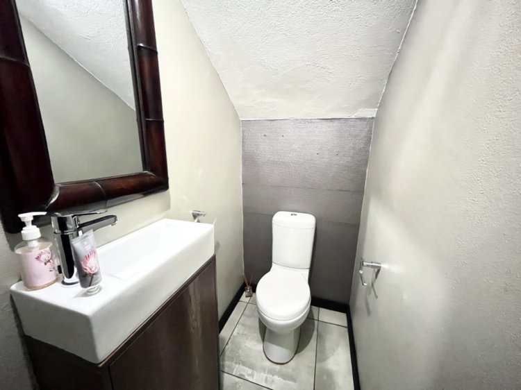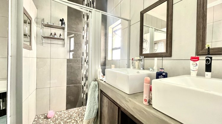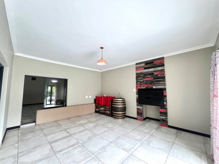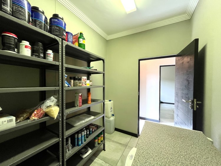 Outside, the property continues to impress with a landscaped, pet-friendly garden, boma, wendy house, water tank, and manual irrigation. The home is well equipped with alternative power, including solar panels, batteries, and an inverter, offering peace of mind and energy efficiency.