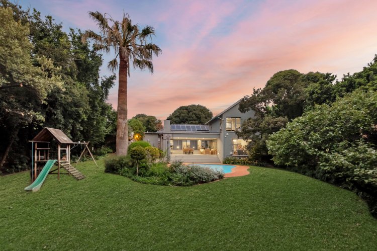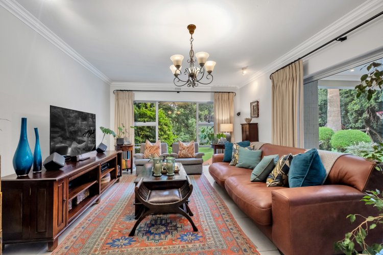 With easy access from the lounge, an expansive covered entertainment patio overlooks the established landscaped garden and pool. A built-in braai with prep and service counters makes this space ideal for year-round entertaining and relaxed alfresco living. Additional features include a double garage with motorized doors, a separate laundry room, and well-appointed staff accommodation with its own bathroom with shower, basin and toilet, ensuring practicality complements the home’s elegant appeal. The property also offers secure off-street parking along with a separate entrance and carport — perfect for guests or additional vehicles.