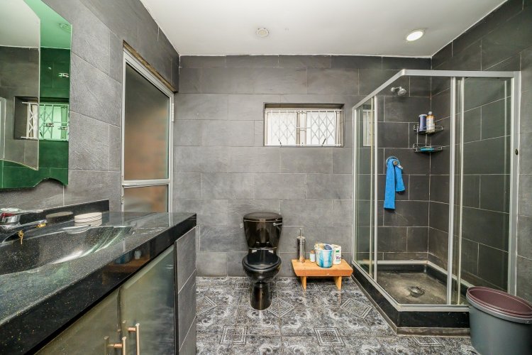 Boasting 5 generously sized, light-filled bedrooms, the main bedroom includes a walk-in dressing room and a spacious en-suite bathroom. Two additional family bathrooms ensure convenience for the whole household, two elegant lounges, a generous size dining room, two spacious kitchens fitted with gas and electric hobs, eye level oven and a separate scullery. Adding exceptional value is the basement flatlet, offering two rooms, a kitchen, and a bathroom, perfect for extended family, guests, or rental income potential. Property is fenced, carport accommodating parking for 3-4 vehicles, electronic driveway gates, JOJO tank for water storage.