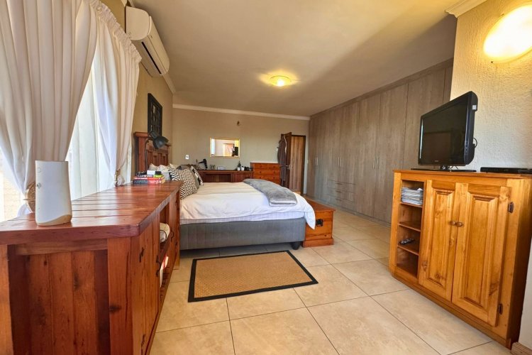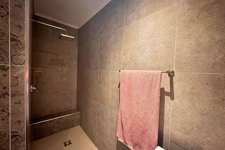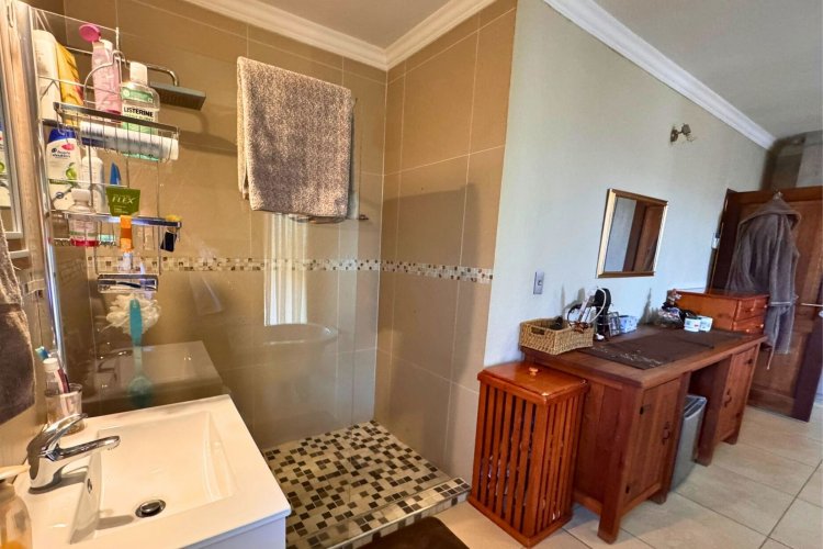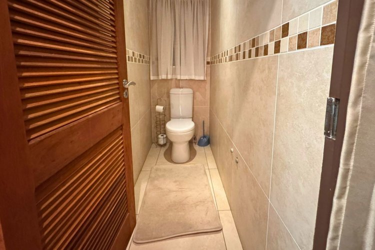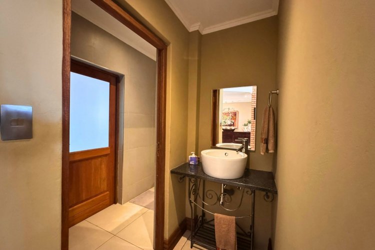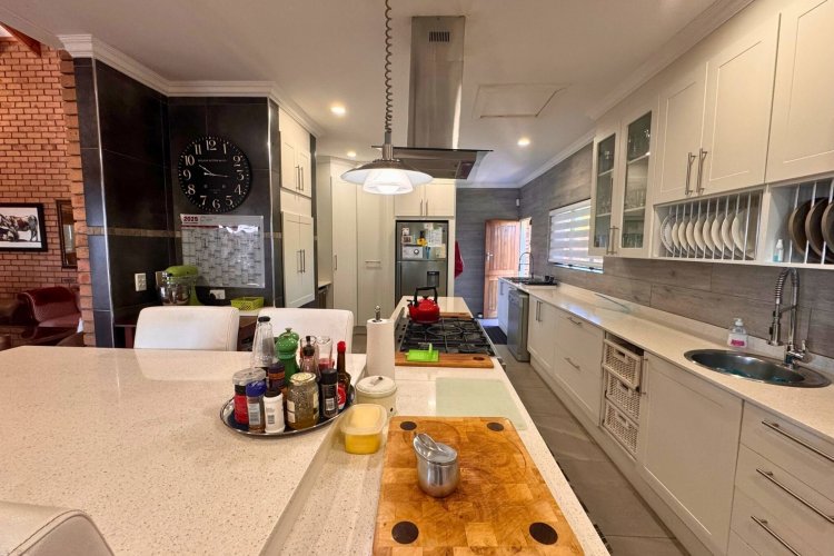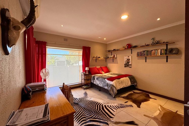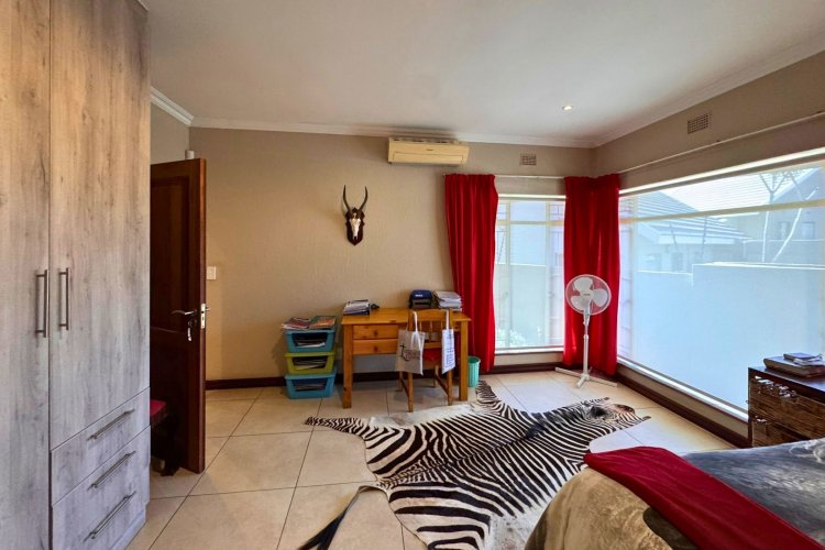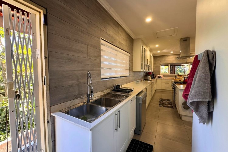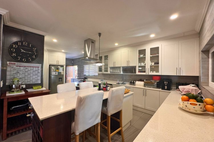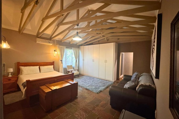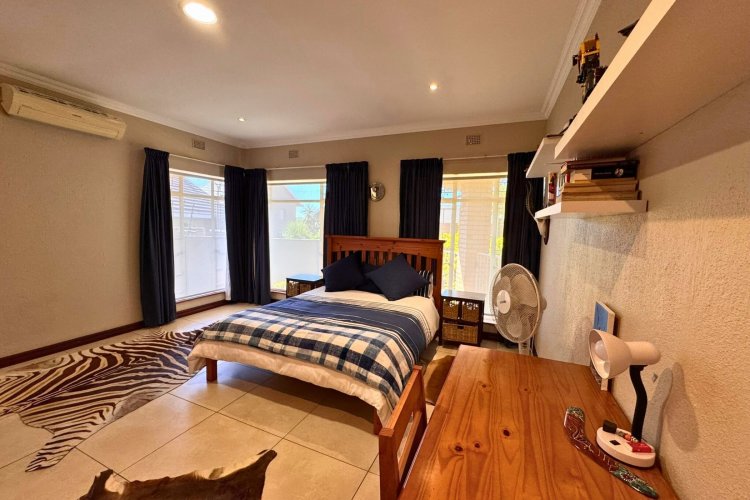 The main house features three generously sized bedrooms, including a master bedroom with en-suite bathroom. There's a huge open-plan lounge and dining area that flows seamlessly into the outdoor entertainment space, as well as a separate TV room perfect for relaxed evenings. A large, modern kitchen with quality finishes, ample counter space, and plenty of storage is ideal for the home chef. A dedicated study with a private balcony and access to a full guest bathroom (with shower and toilet) adds to the home's versatility. The entire house is air-conditioned for year-round comfort, and ample built-in cupboards and storage spaces are found throughout.