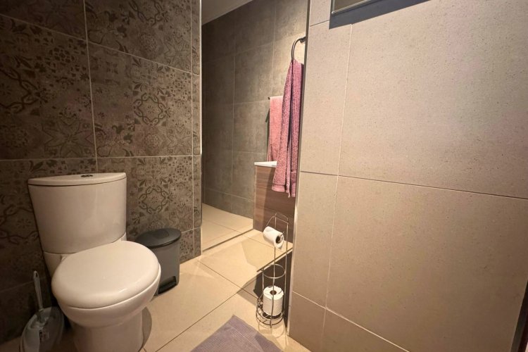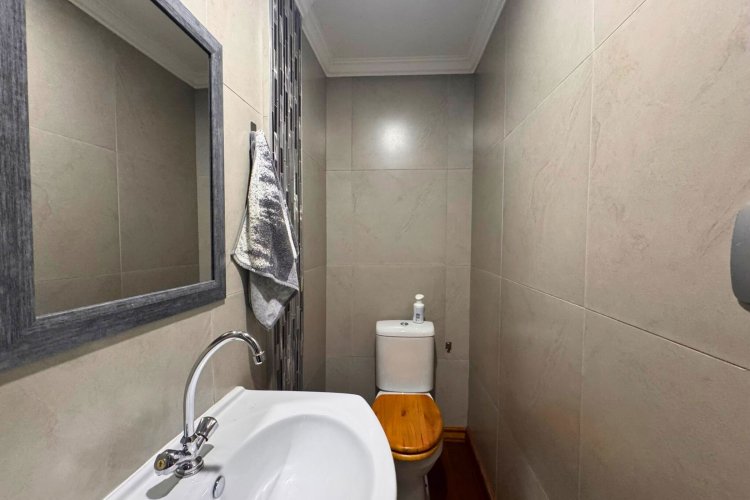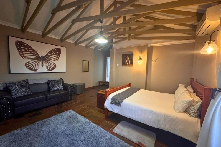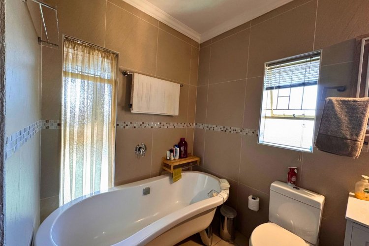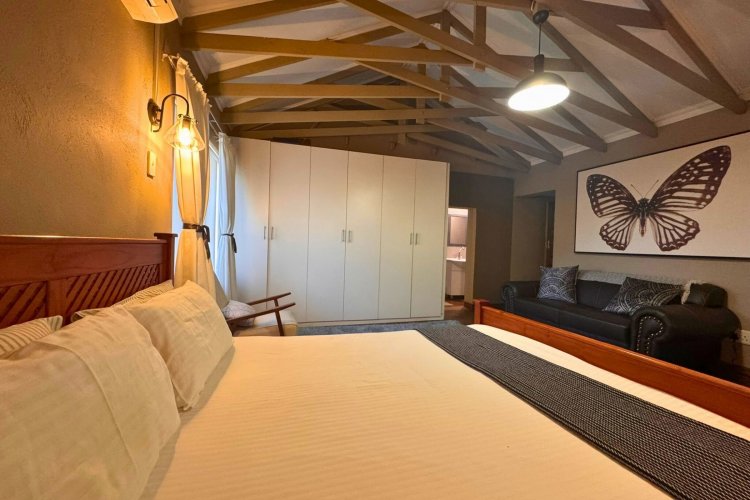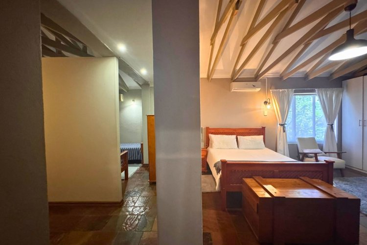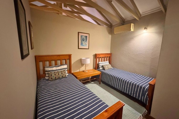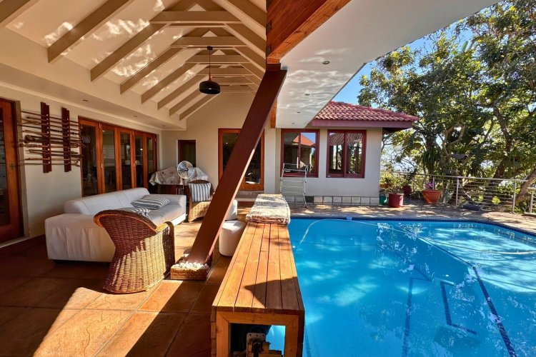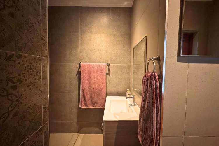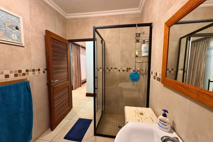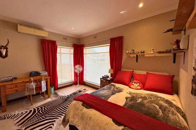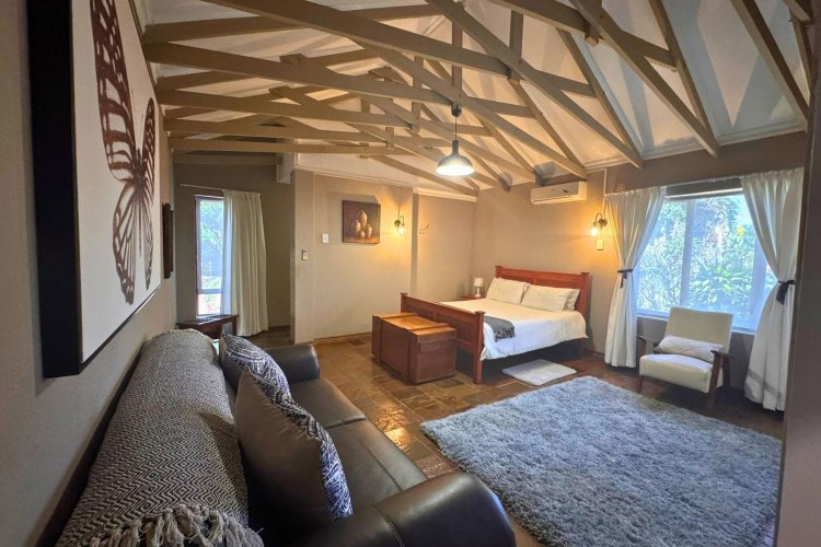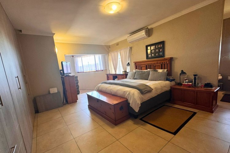 The main house features three generously sized bedrooms, including a master bedroom with en-suite bathroom. There's a huge open-plan lounge and dining area that flows seamlessly into the outdoor entertainment space, as well as a separate TV room perfect for relaxed evenings. A large, modern kitchen with quality finishes, ample counter space, and plenty of storage is ideal for the home chef. A dedicated study with a private balcony and access to a full guest bathroom (with shower and toilet) adds to the home's versatility. The entire house is air-conditioned for year-round comfort, and ample built-in cupboards and storage spaces are found throughout.