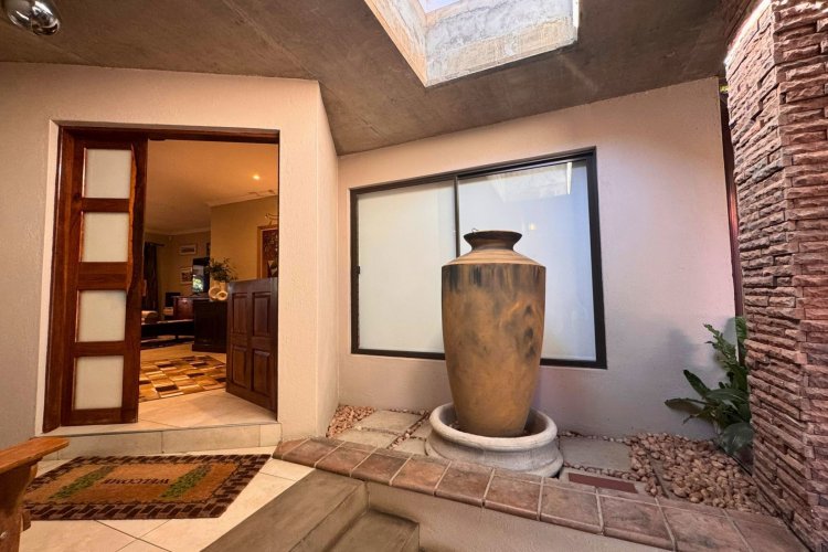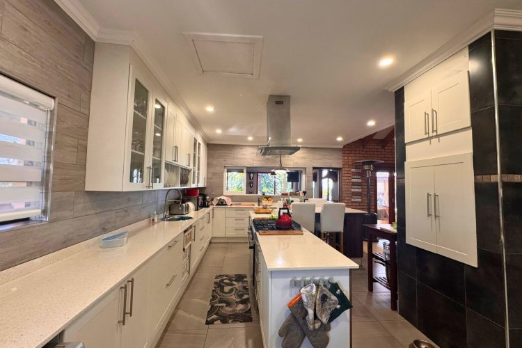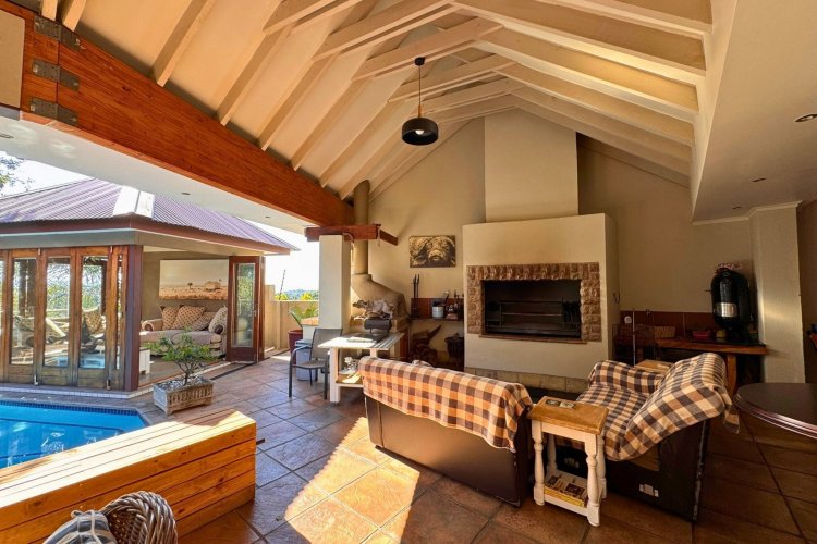 Entertain with ease thanks to a massive undercover patio with built-in braai and pizza oven. This outdoor dining area opens to a heated pool and cozy sunroom, perfect for enjoying winter mornings. A downstairs entertainment room offers the perfect space for a private bar or wine cellar. The home is surrounded by a beautifully maintained and tranquil garden, adding to the peaceful ambience.