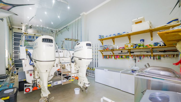 An outside en-suite guestroom is privately positioned, and for the boating enthusiast, a dedicated boat garage with a fully equipped fish-cleaning room and facilities adds further appeal. An additional outside braai room ensures effortless entertaining.