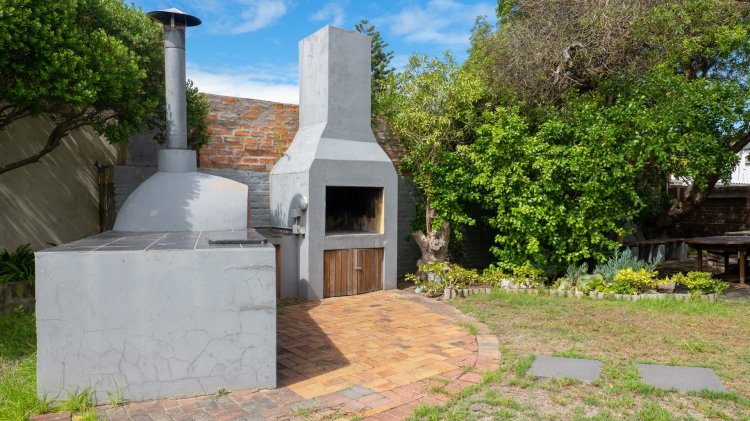 Upstairs, the balcony offers sea views, reminding you that the ocean is truly just around the corner. The lovely shaded garden with outdoor braai and pizza oven is perfect for relaxed summer days and entertaining family and friends.