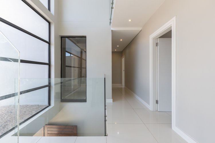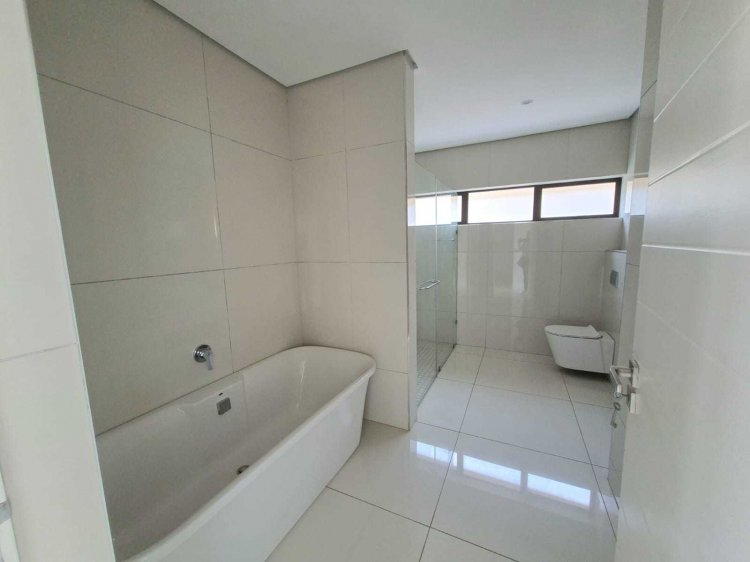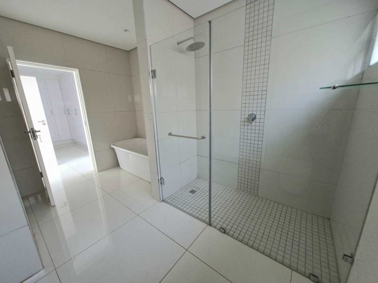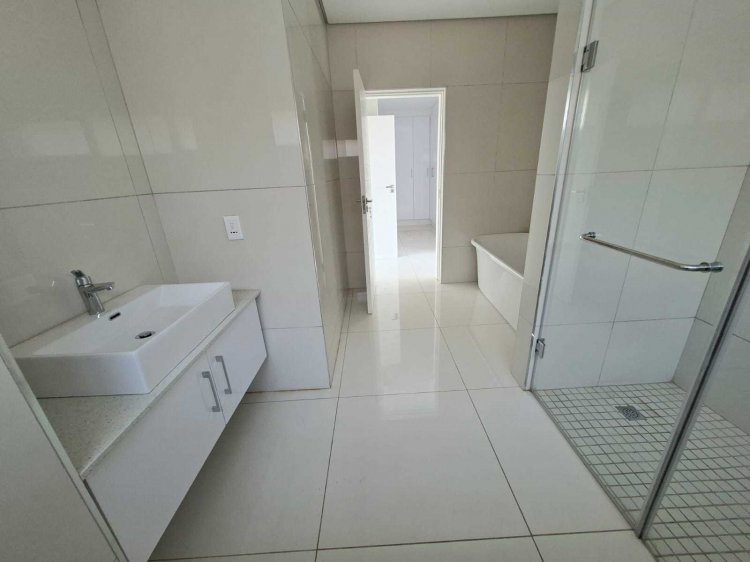 Discover modern luxury and timeless elegance in this stylish five-bedroom triplex, set within the secure and highly sought-after Sera Bella Estate. Designed with authentic Balinese-inspired architecture, no expense has been spared to create a residence that blends sophistication, security, and comfort. This exquisite home is fully tiled with Nano porcelain finishes and offers a seamless open-plan living area with large windows and sliding doors that flood the space with natural light. The modern kitchen is a chef’s dream, featuring Caesarstone countertops, soft-close cabinetry, a Smeg and Miele oven and hob, and a separate scullery with additional storage. The living areas flow onto beautifully landscaped gardens and entertainment balconies, perfect for hosting guests.