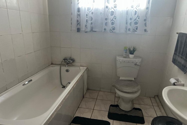 The property is equipped with a security alarm system and burglar bars, ensuring safety. Additional features include a double garage and parking space for up to two vehicles.