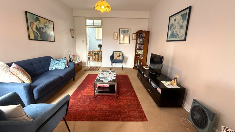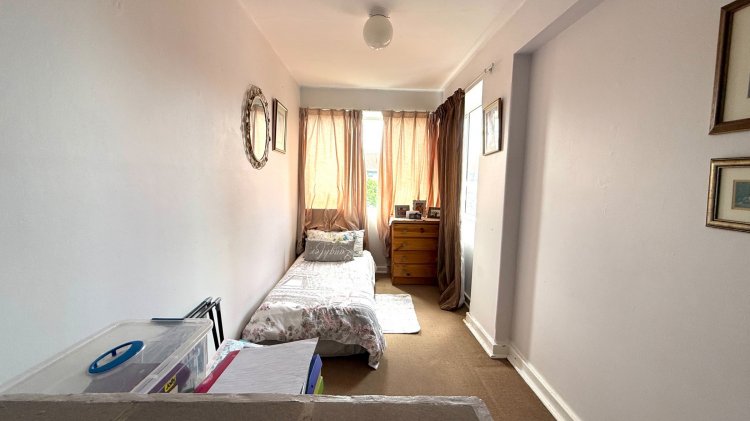 Spacious, airy top floor apartment with pretty garden and city views. It offers a tiled open-plan kitchen and diningroom, large living room with a study or small bedroom leading off the lounge. The bedroom is carpeted with loads of built-in cupboards. Bathroom consists of a bath and basin with space for your washing machine and bonus a separate toilet.