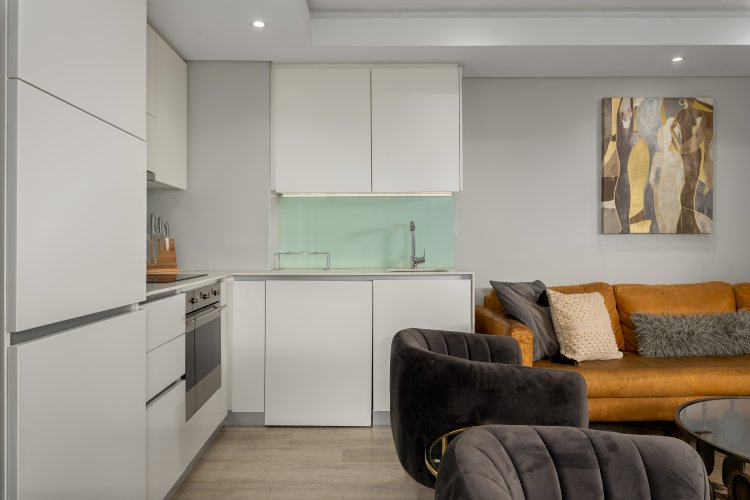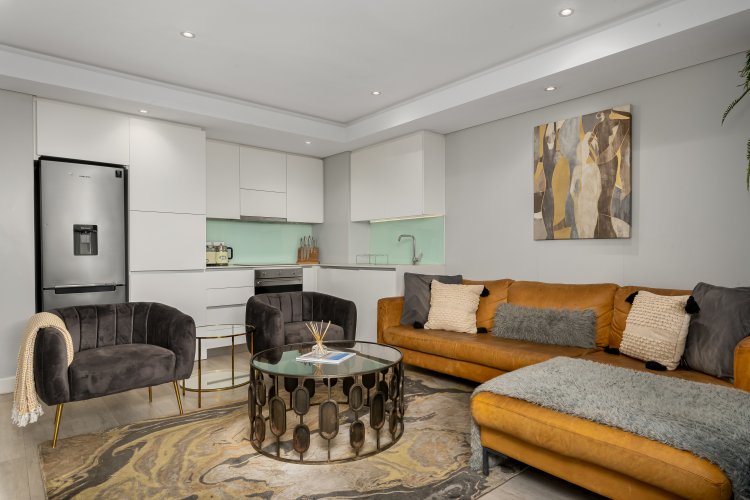 The open plan living area flows seamlessly, creating a sense of space and comfort, while the bedroom offers privacy and style. The building’s design captures sweeping views of the Atlantic Seaboard, Table Mountain and the city skyline.