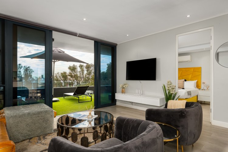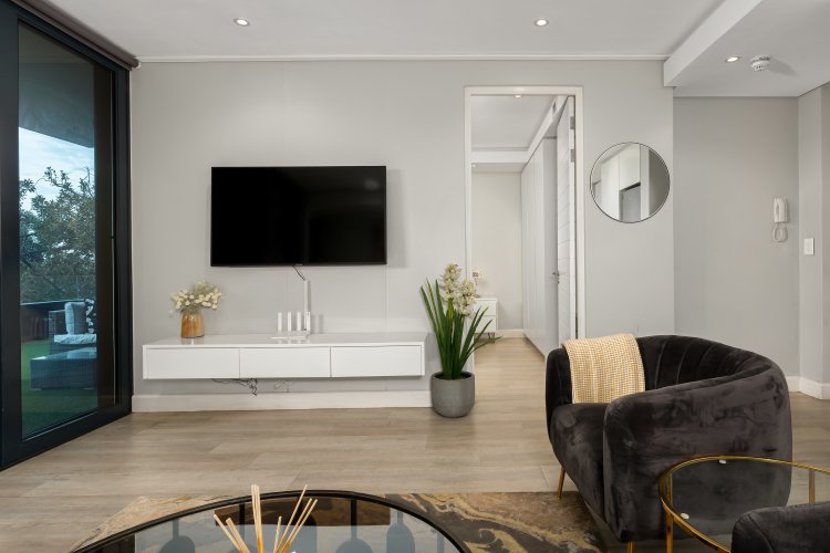 This 45 m² one-bedroom apartment blends modern design with an unbeatable Green Point location. Part of the striking 35 On Main development, it features sleek interiors, smart space planning and plenty of natural light.