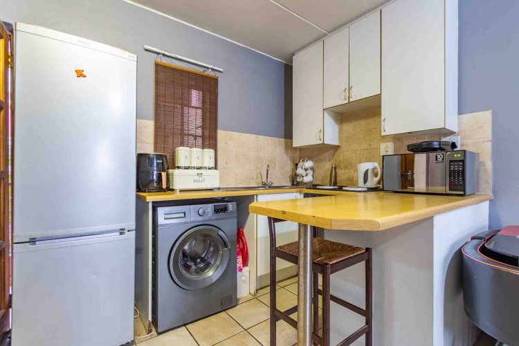 The apartment features an open-plan living area that flows effortlessly into a modern kitchen, ideal for relaxing or entertaining. The bedroom is cozy yet spacious, complete with built-in cupboards, and the bathroom is neat and functional. A pre-paid electricity meter gives you full control over your monthly utility costs.