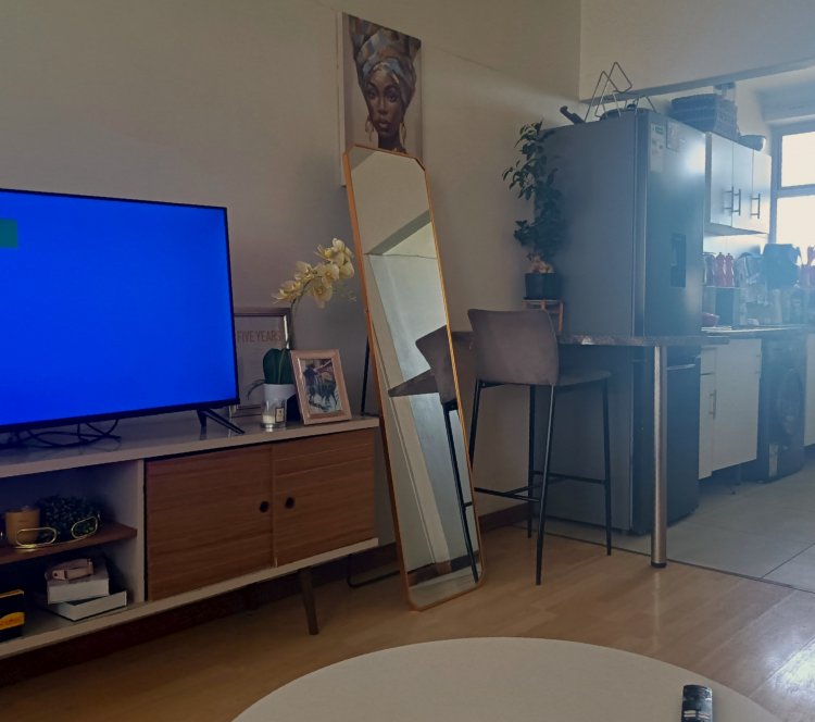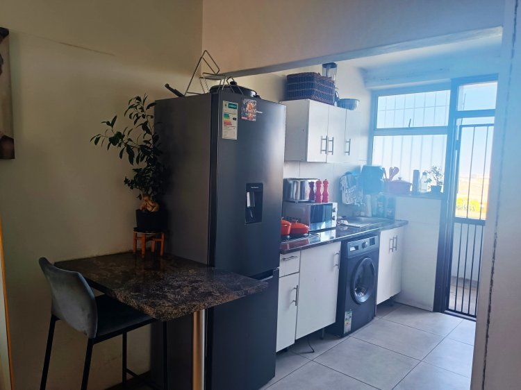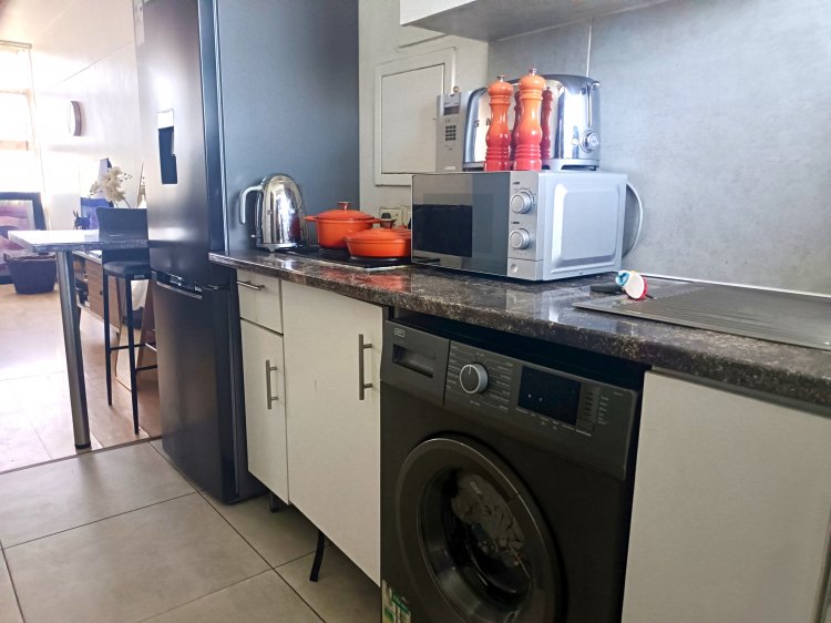 This cozy bachelor flat featuring an open plan kitchen and lounge area, ideal for relaxed living and entertaining. The kitchen is equipped with a built-in two-plate stove and a small breakfast nook, perfect for quick meals. There is also space available for a washing machine, adding to the convenience.