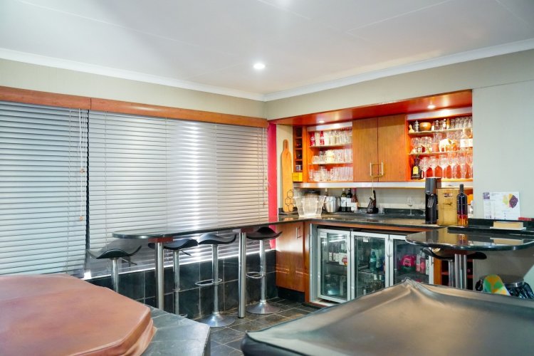 Ground Floor Highlights: - Formal dining room for family gatherings. - Study and dedicated office with ample filing/storage space. - Comfortable TV room for everyday family living. - Bar area flowing seamlessly to the patio. -Covered patio with dual built-in braais, currently set up as a private cinema experience. - Relaxing 7-seater jacuzzi. - Guest toilet for visitors. - Gourmet kitchen with separate laundry/scullery for convenience.